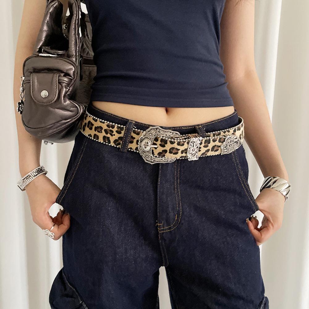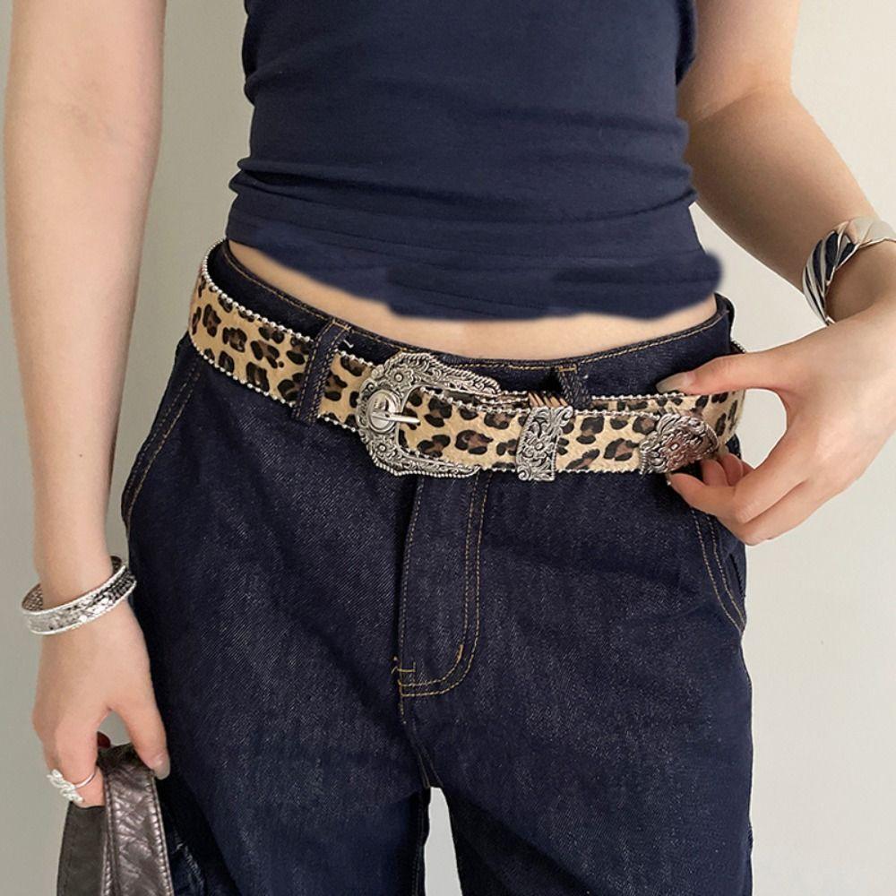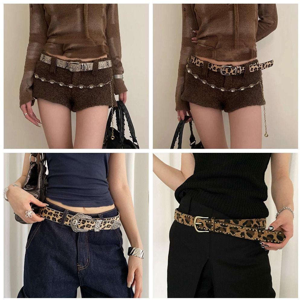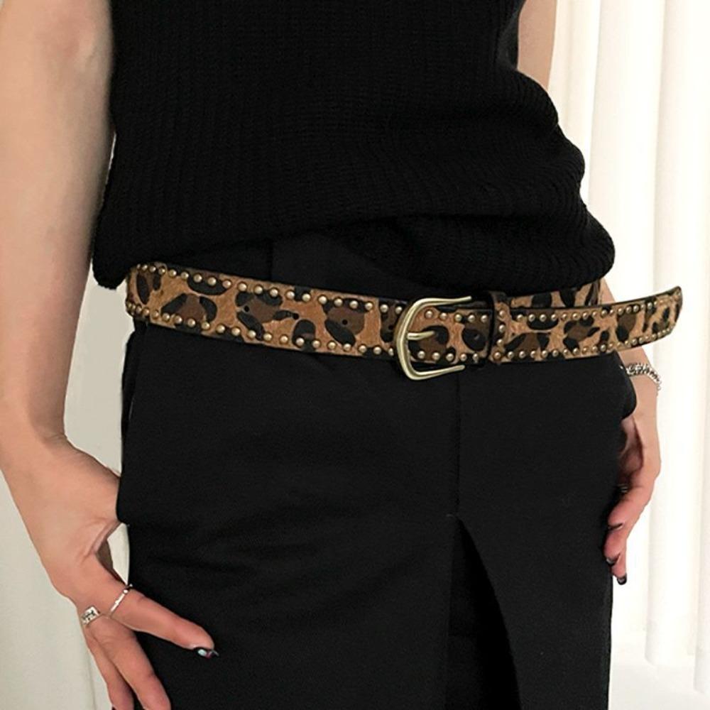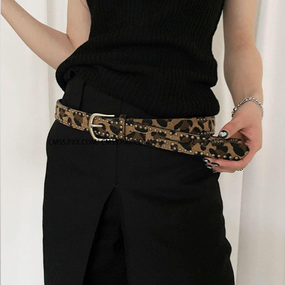 Gothic Rivet Waist Belt Punk Style Women's Waist Belt Fashion Leopard Print Belt Streetwear