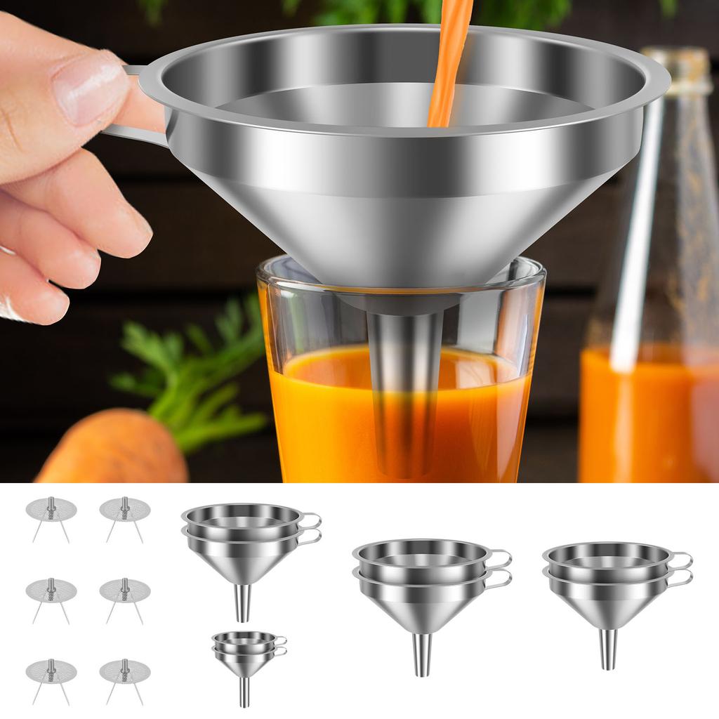 7/14 Pcs Stainless Steel Funnel Kitchen Funnel with Removable Strainer and Handle Dishwasher Safe Cooking Funnels for Oil Flour