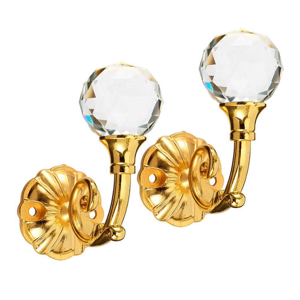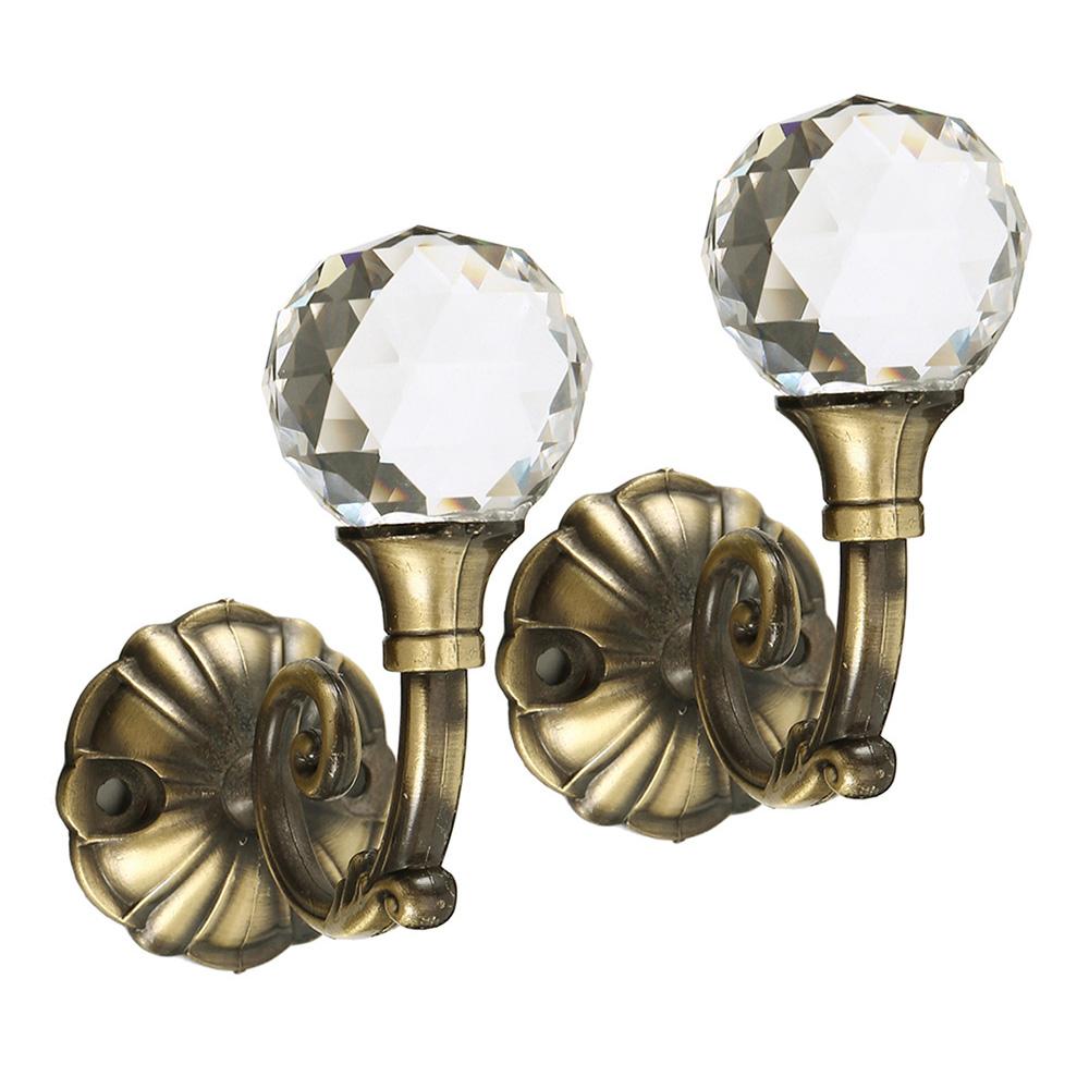 2pcs Curtain Holdbacks Wall Mounted Drapery Tiebacks Metal Crystal Curtain Hanging Hook Decorative for Bedroom Livingroom