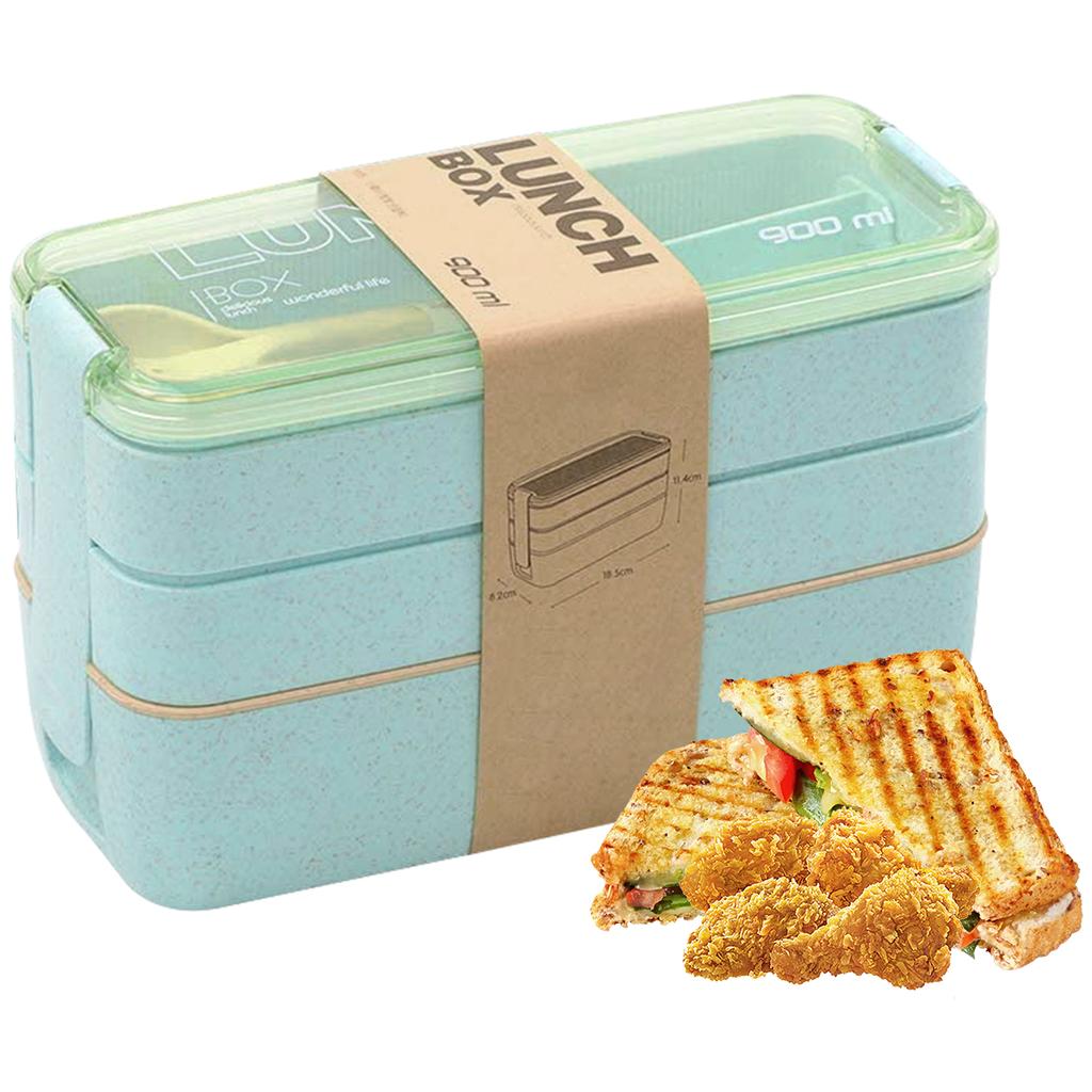 900 ML Bento Box Portable 3 Layers Stackable Lunch Boxes Plastic Reusable Leak-proof Food Container for Adults Kids and Students