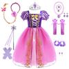 Маленькие Девочки Фиолетовая Принцесса Рапунцель День Рождения Косплей Хэллоуин Пасха Карнавал Маскарадное Платье Девочки Праздничное Платье Переодевание