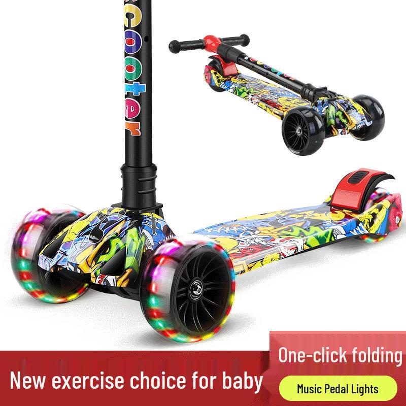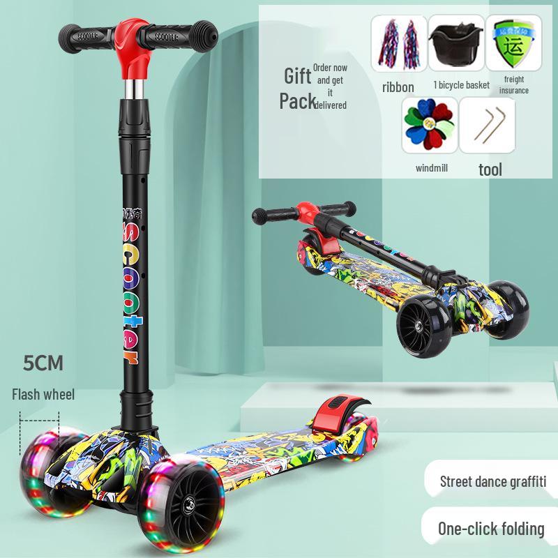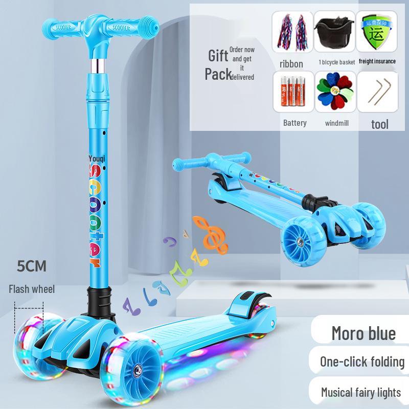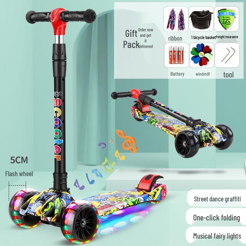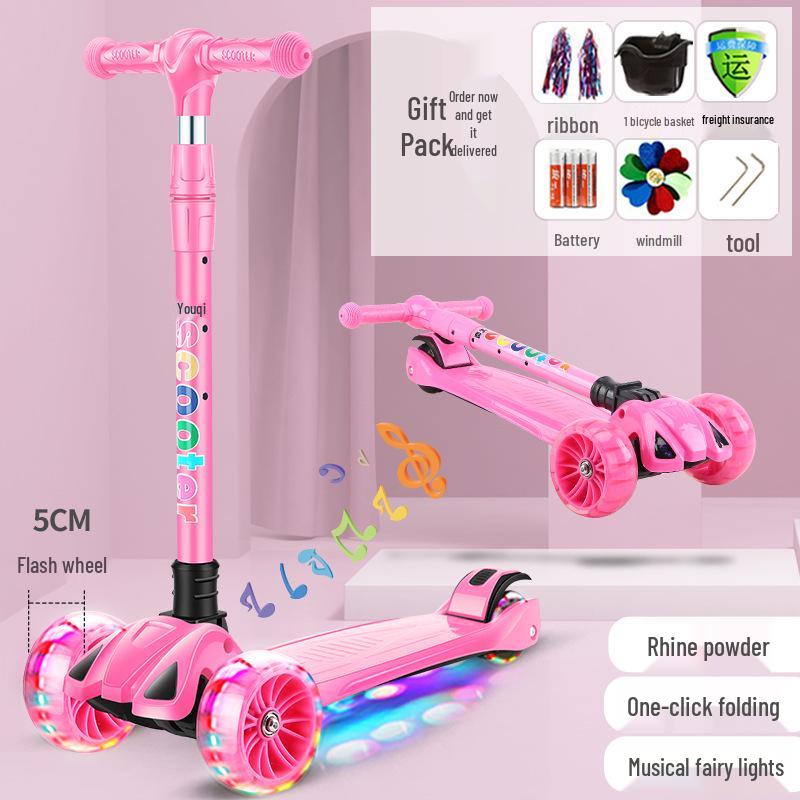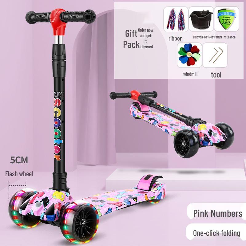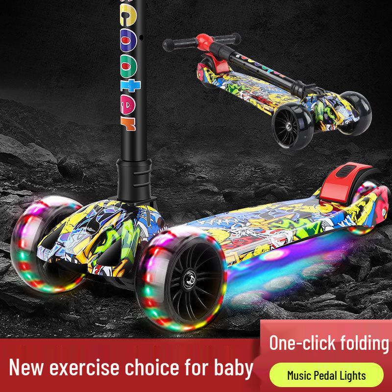 Детский складной самокат с мигающими колесами для детей 2-8 лет