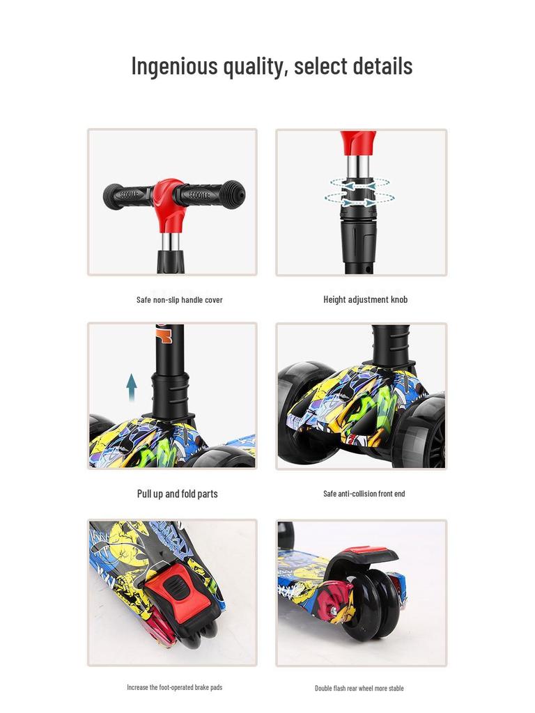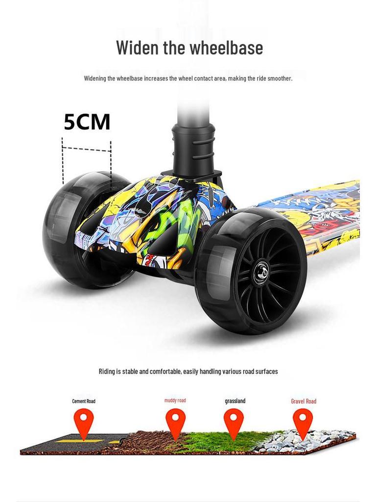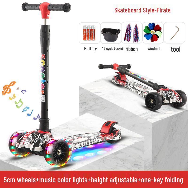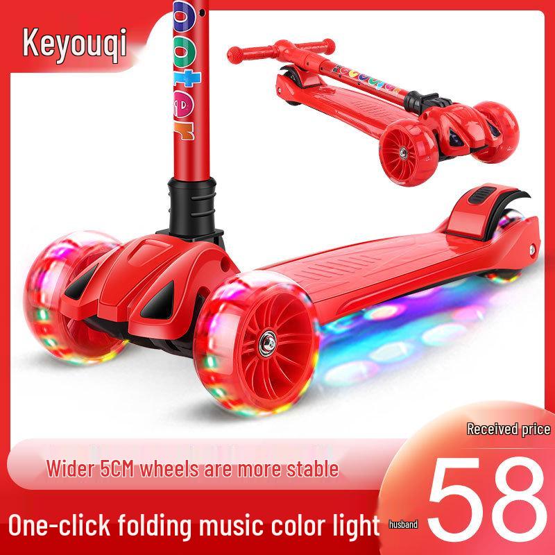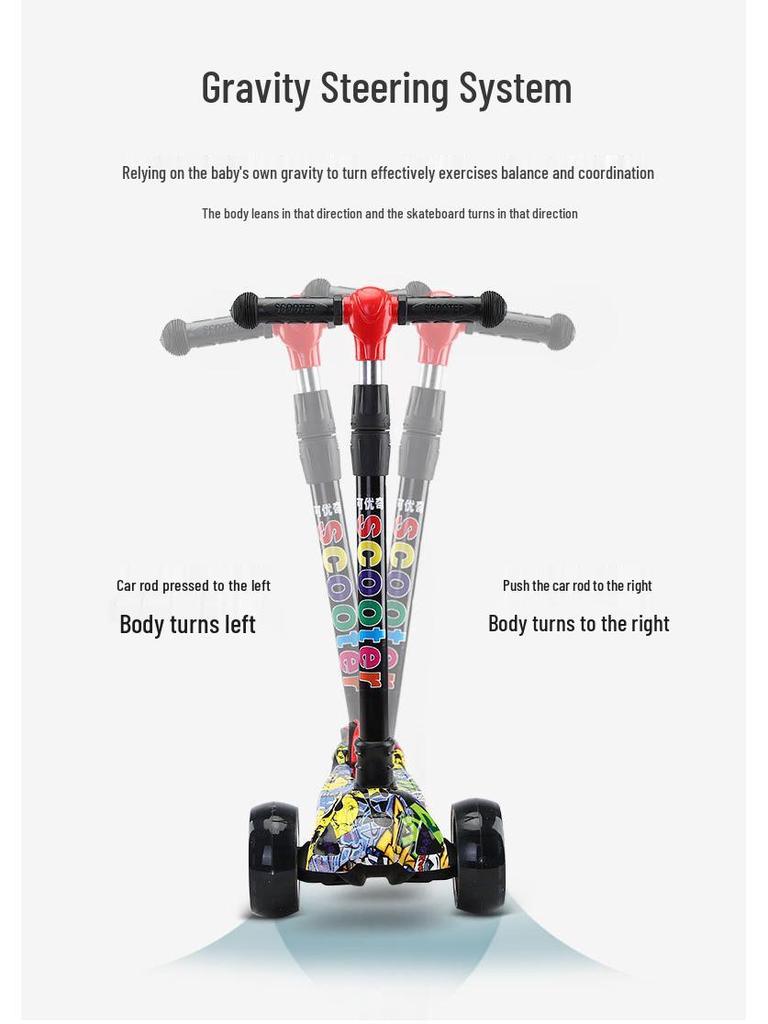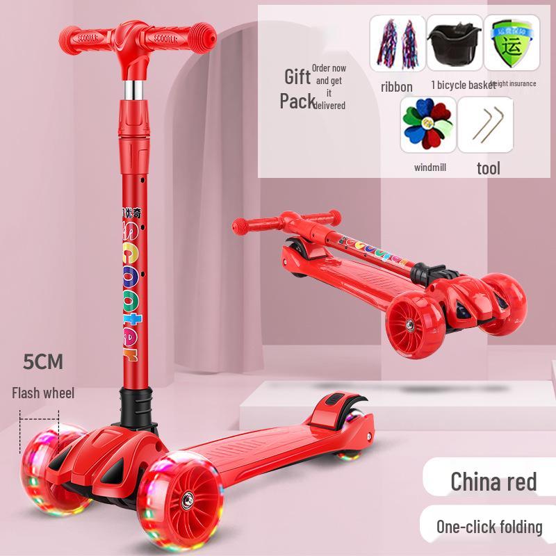 Детский складной самокат с мигающими колесами для детей 2-8 лет