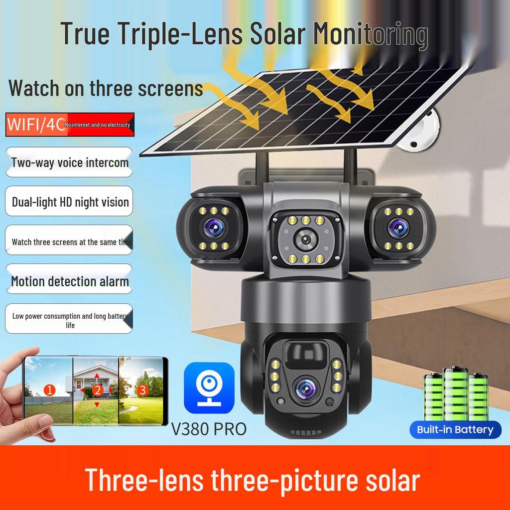 V380 Солнечная 4G Беспроводная HD Ночное Видение WiFi PTZ Камера на Батарейках с Тремя Объективами