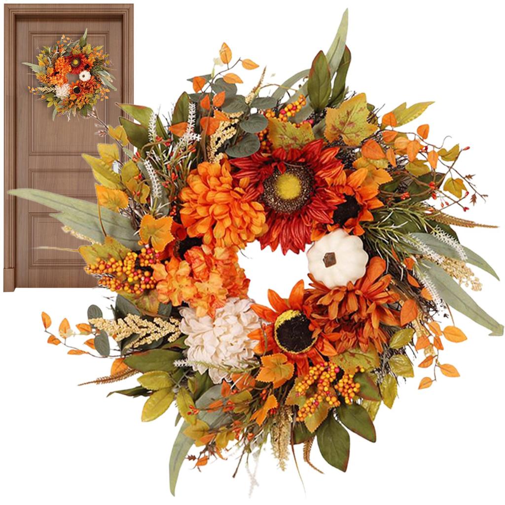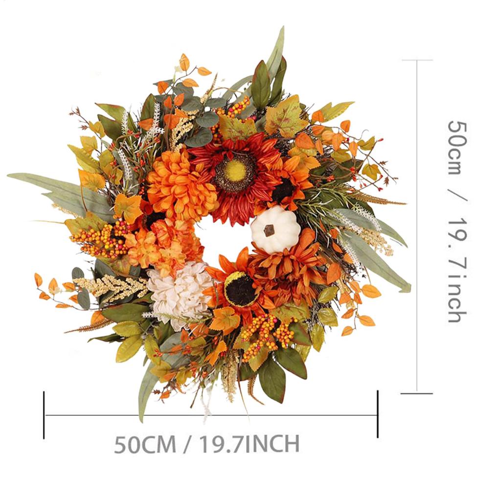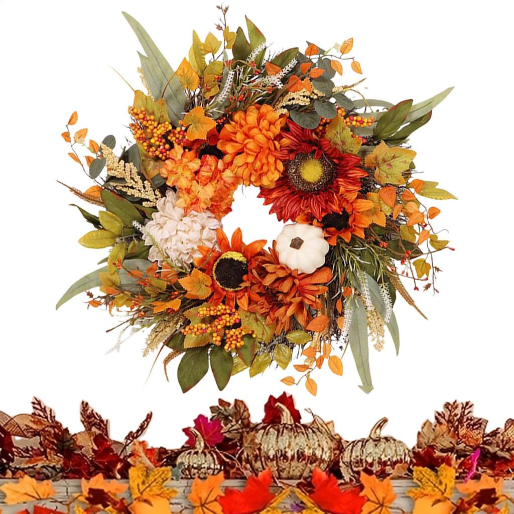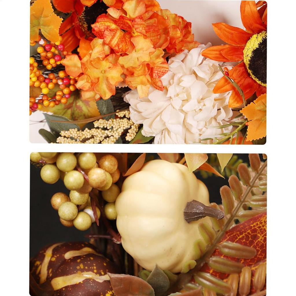 Autumn Harvest Wreath Artificial Pumpkin Wreath Front Door Autumn Wreath for Thanksgiving Harvest Halloween Party Wreath Decor
