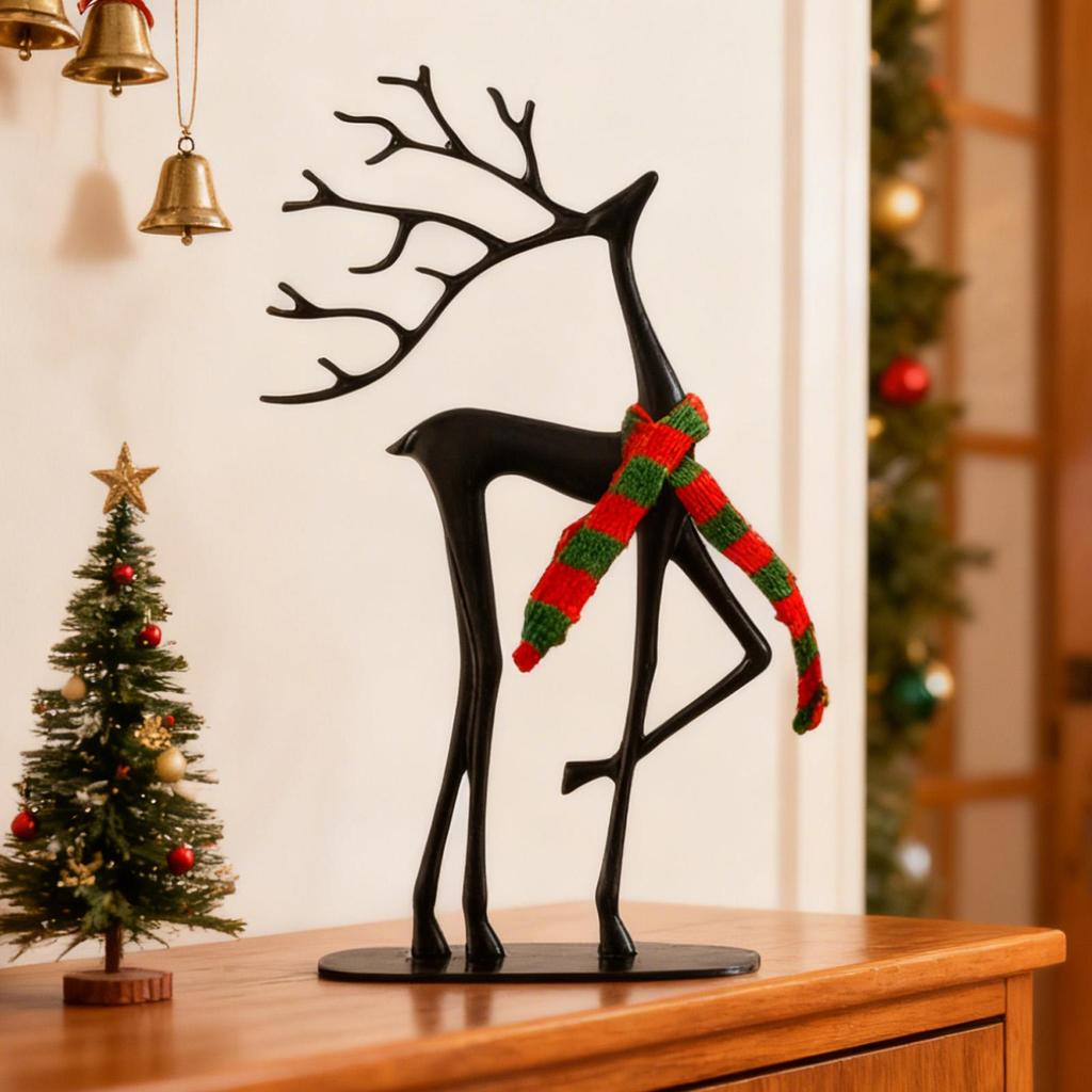 Олень Декор Черные Статуэтки Оленей Черные Металлические Статуэтки Лосей Рождественская Скульптура Оленя для Настольного Центрального Элемента Рождественский Декор