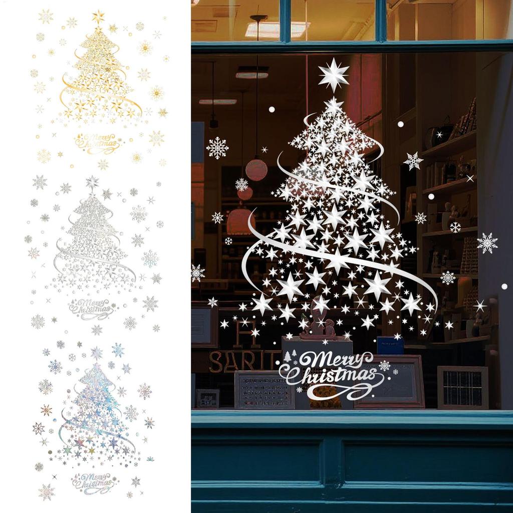 Рождественские наклейки на окна 2 листа Съемные наклейки Статические наклейки на окна с рождественской елкой для дома, вечеринки, стеклянной двери, стены, окна