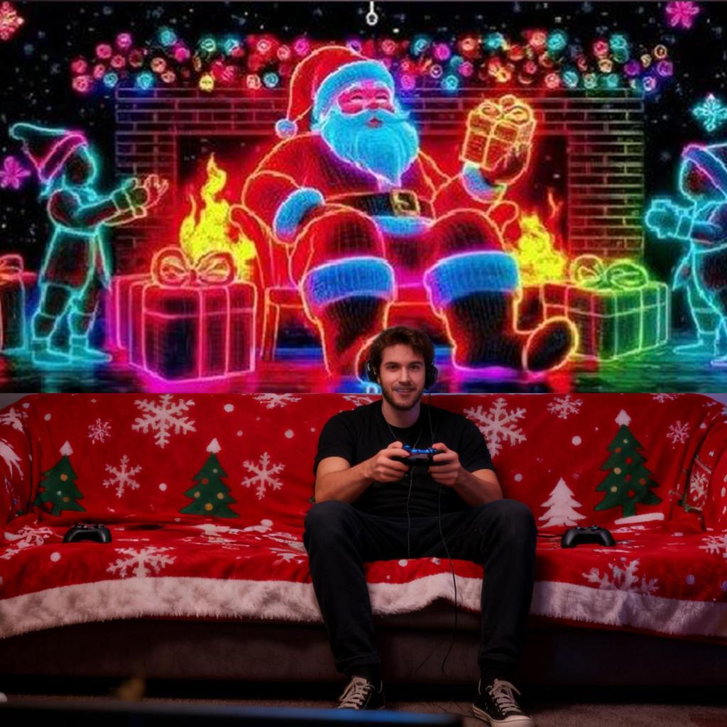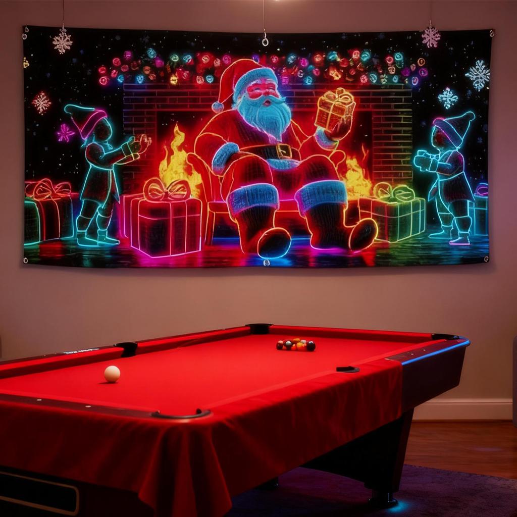 Santa Garage Door Cover Christmas 13x6ft UV Fluorescent Holiday Decoration Garage Door Holiday Background for Homeowners Party