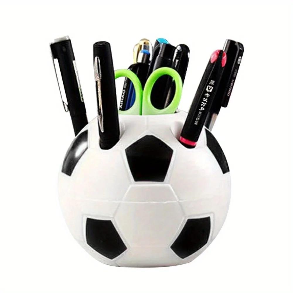 Многофункциональный милый держатель для ручек в форме футбольного мяча, прочный пластиковый органайзер-подставка для хранения карандашей, коробка-контейнер, декор для рабочего стола, подарки