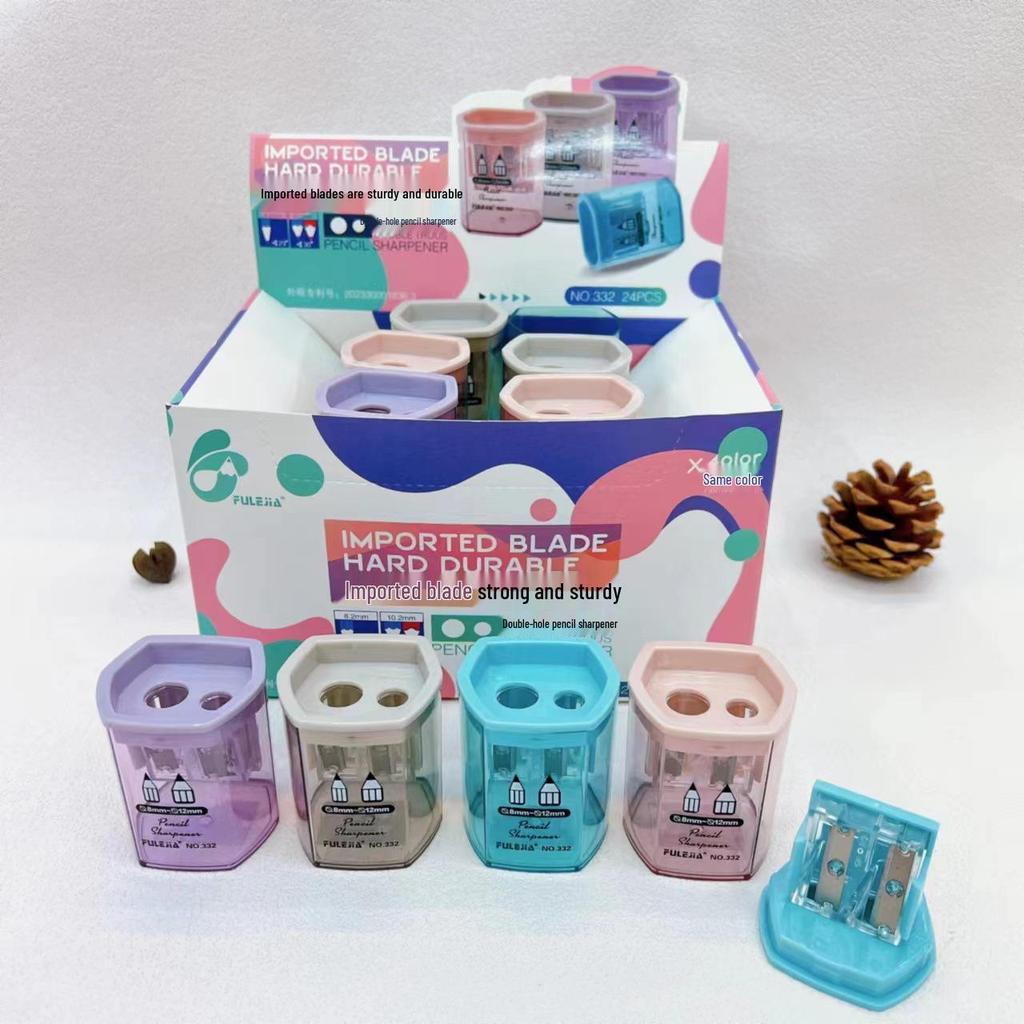 Transparent Geometric Double-Hole Macaron Pencil Sharpener: Portable, Durable, and Rotary for Students.
