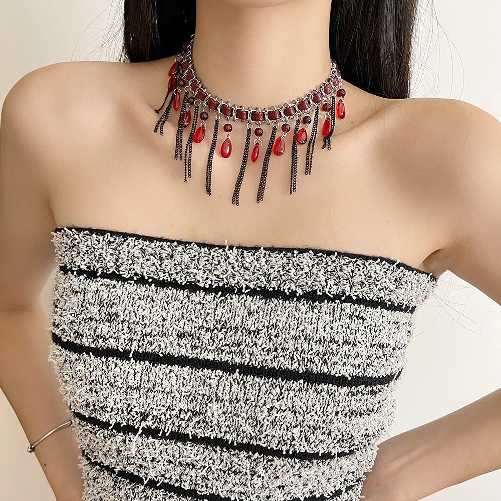 Цепочка на ключицу с кисточками и бусинами, винтажная цепочка на ключицу, модный чокер из бусин, женский