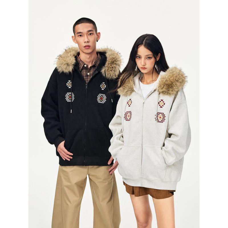 Худи с капюшоном и съемным меховым воротником в этническом стиле с изображением тигра из джунглей для мужчин и женщин 2026 Весна Новая куртка Парные топы