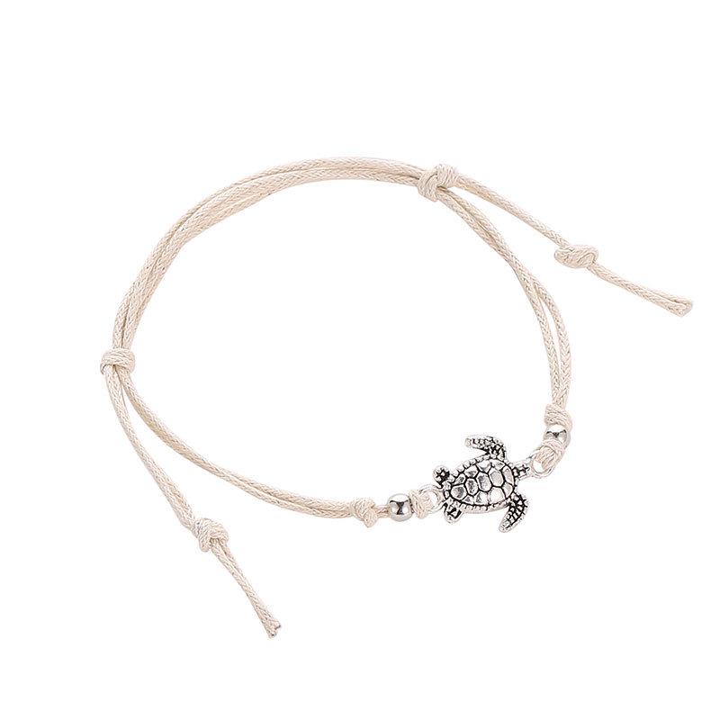Модный Винтажный Конопляный Шнурок Черепаха Браслет на Лодыжку Ручной Работы Древнее Серебро Черепаха Пляжный Браслет на Лодыжку Украшение для Ноги KTJ