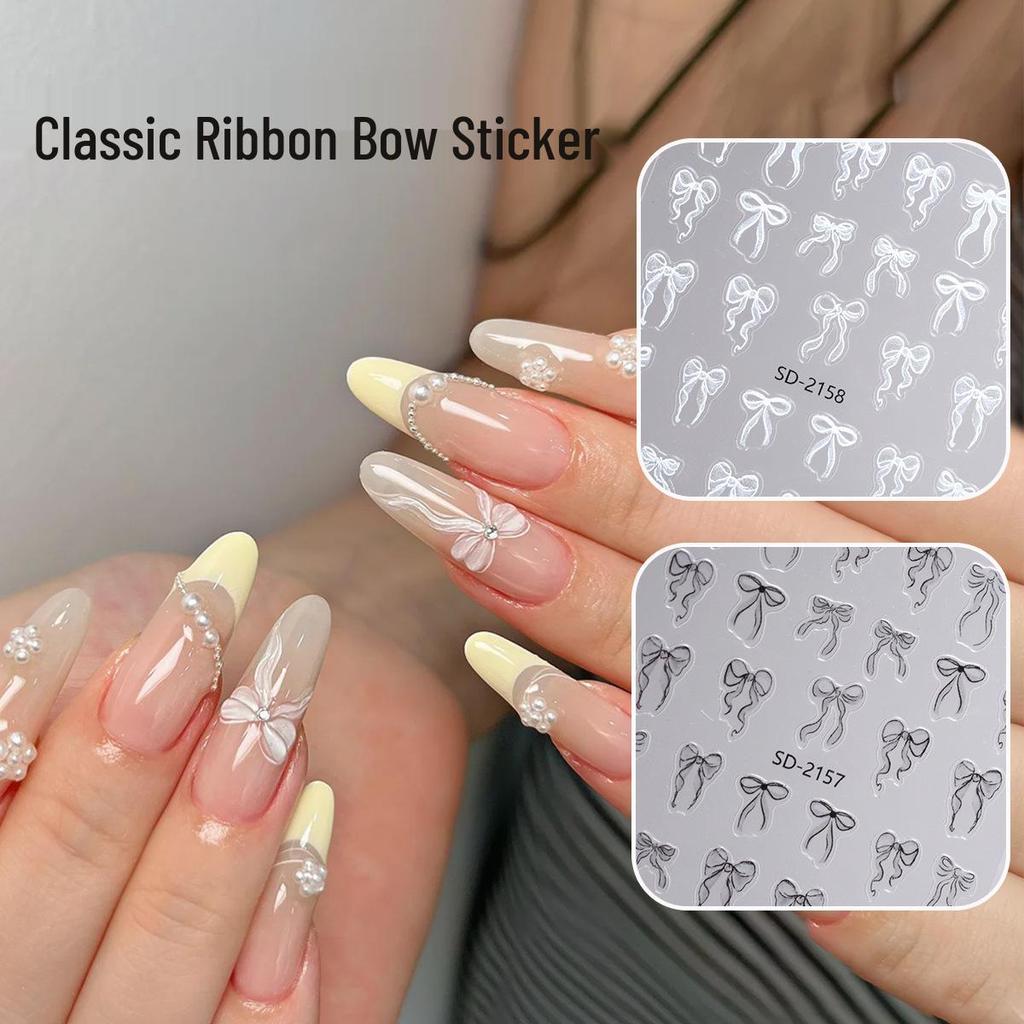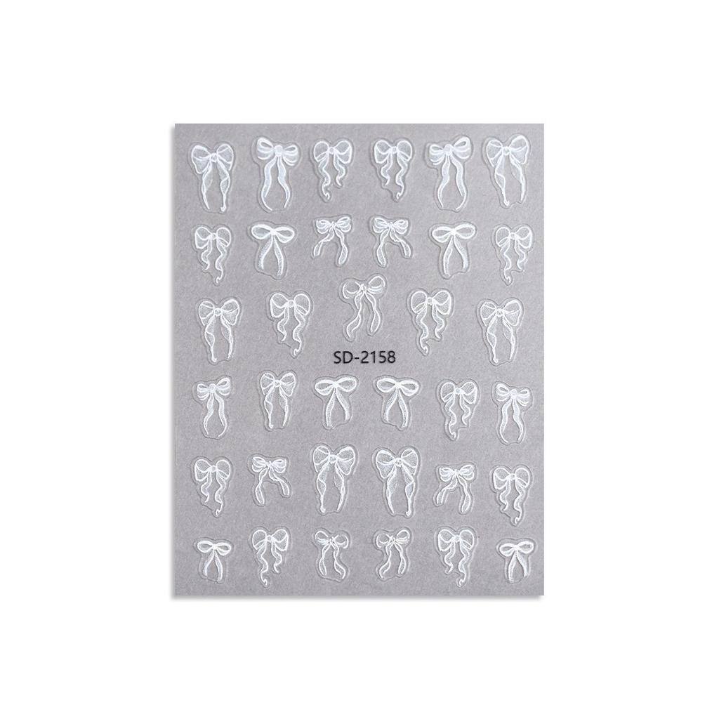 Белые бантики из ленты 3D наклейки для ногтей - Тонкие, прочные и стильные украшения для ногтей