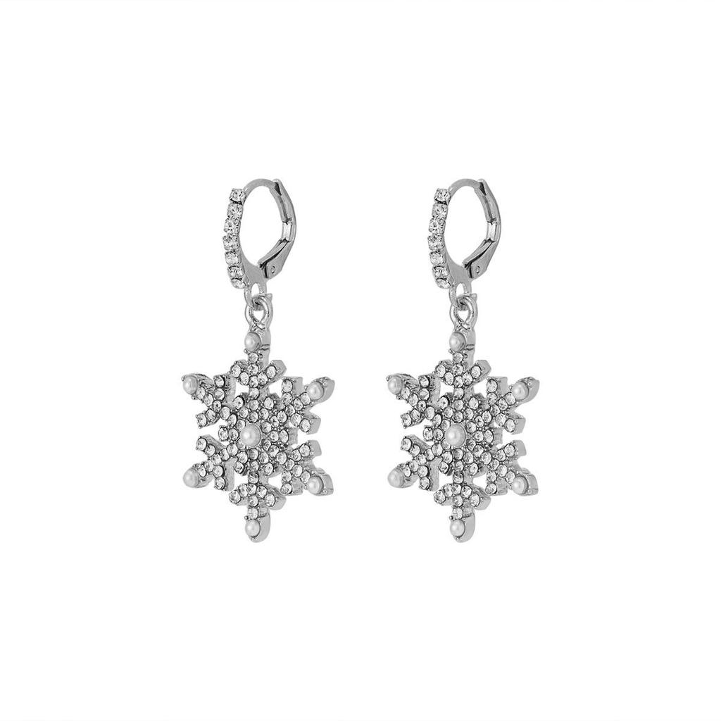 Серьги-снежинки с цирконами и жемчугом - Элегантные праздничные украшения для женщин