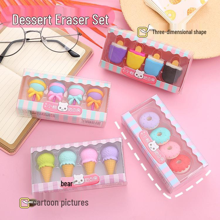 Набор мультяшных ластиков-десертов - Милые подарки для школьников и учебные принадлежности