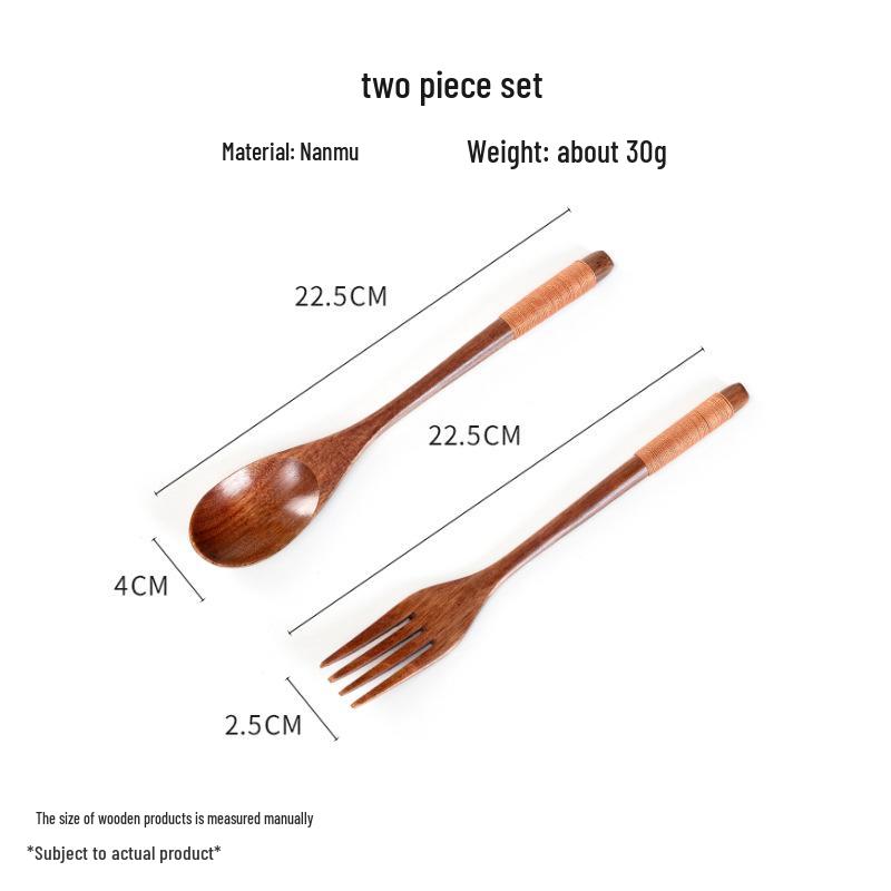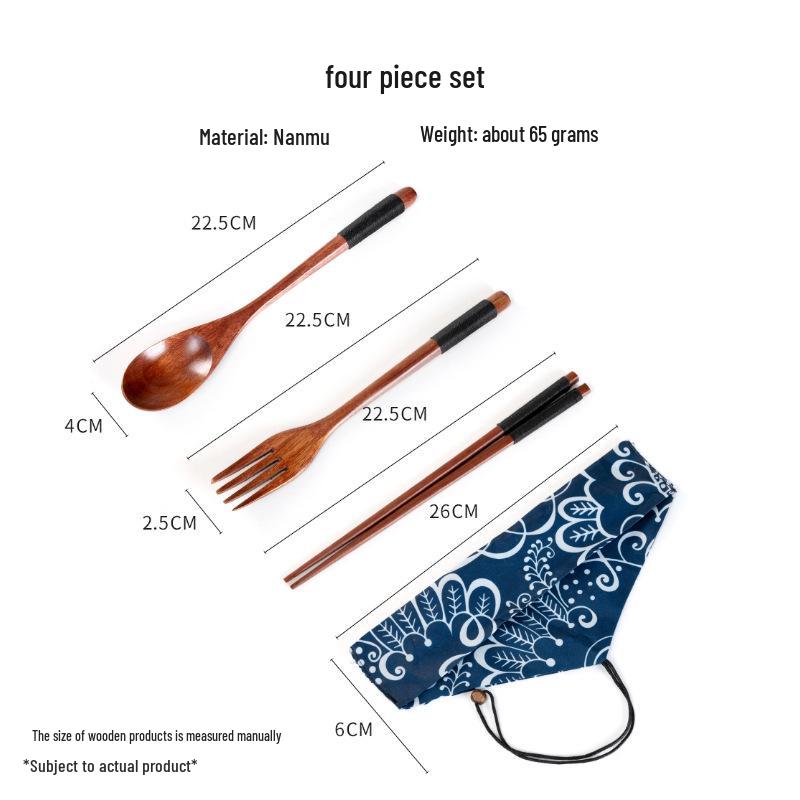 Набор деревянных столовых приборов: Ложка, вилка и палочки для еды с дорожным чехлом
