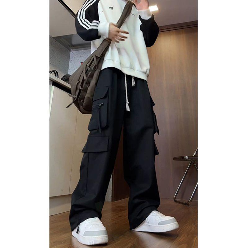 Tall Men's Extra-Long Pants, Autumn American-Style Paratrooper Cargo Pants, Men's Fleece-Lined Straight-Leg Casual Pants for Teenagers