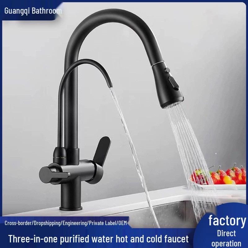 All-Copper Dual-Use Pull-Out Kitchen Faucet with Hot/Cold & Water Purifier — купить товар онлайн с бесплатной доставкой по всему миру!