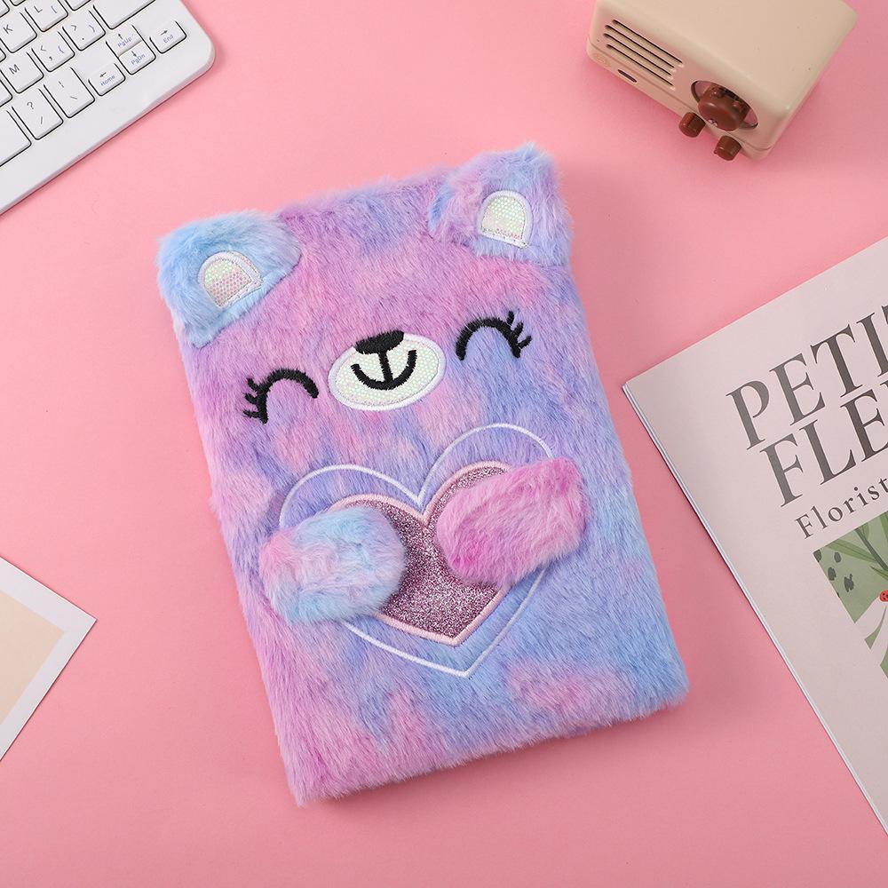 Трансграничный плюшевый блокнот с плюшевым мишкой и сердечком - Креативный студенческий дневник