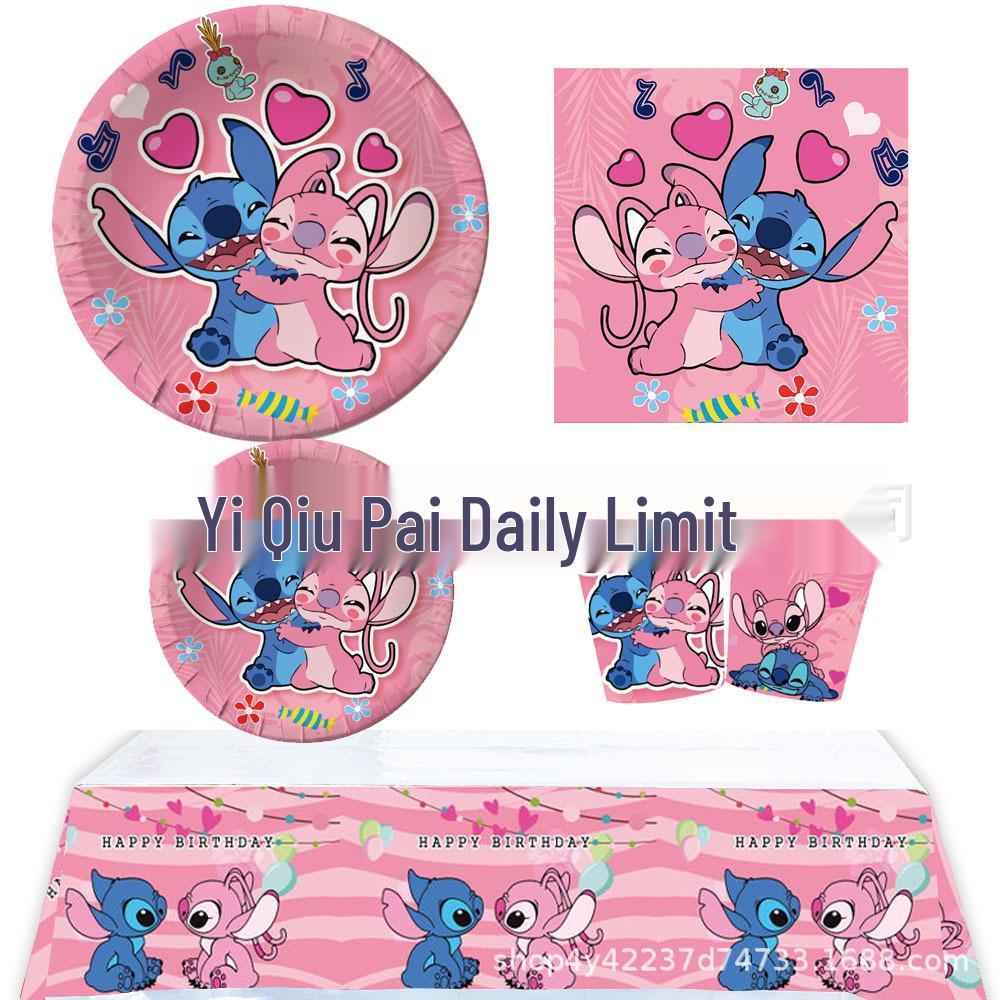 Розовый набор для вечеринки Лило и Стич: Тарелки, Чашки, Салфетки, Скатерти, Пакеты для подарков, Баннеры, Приглашения
