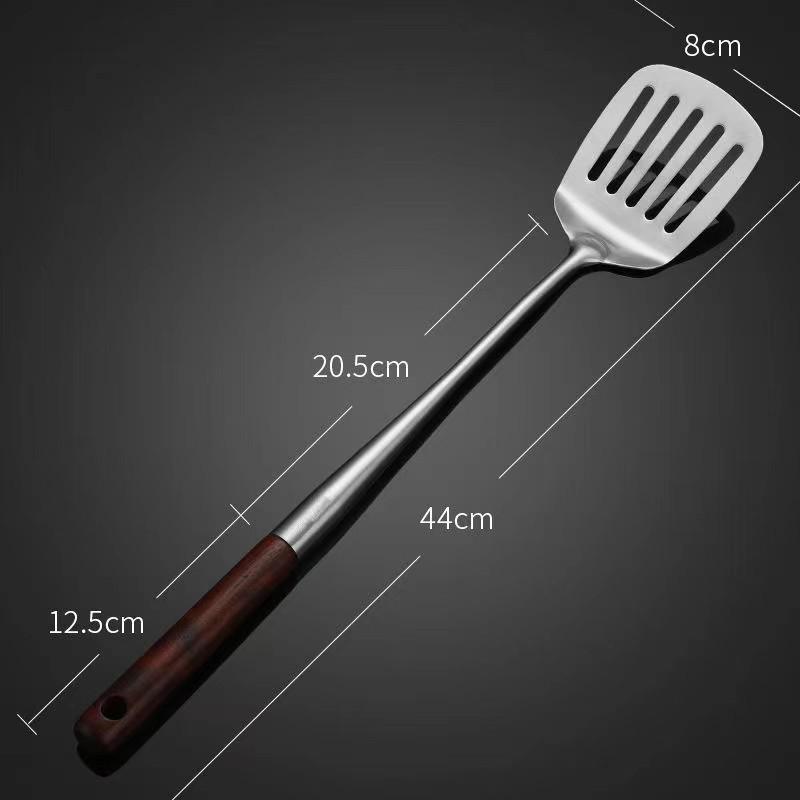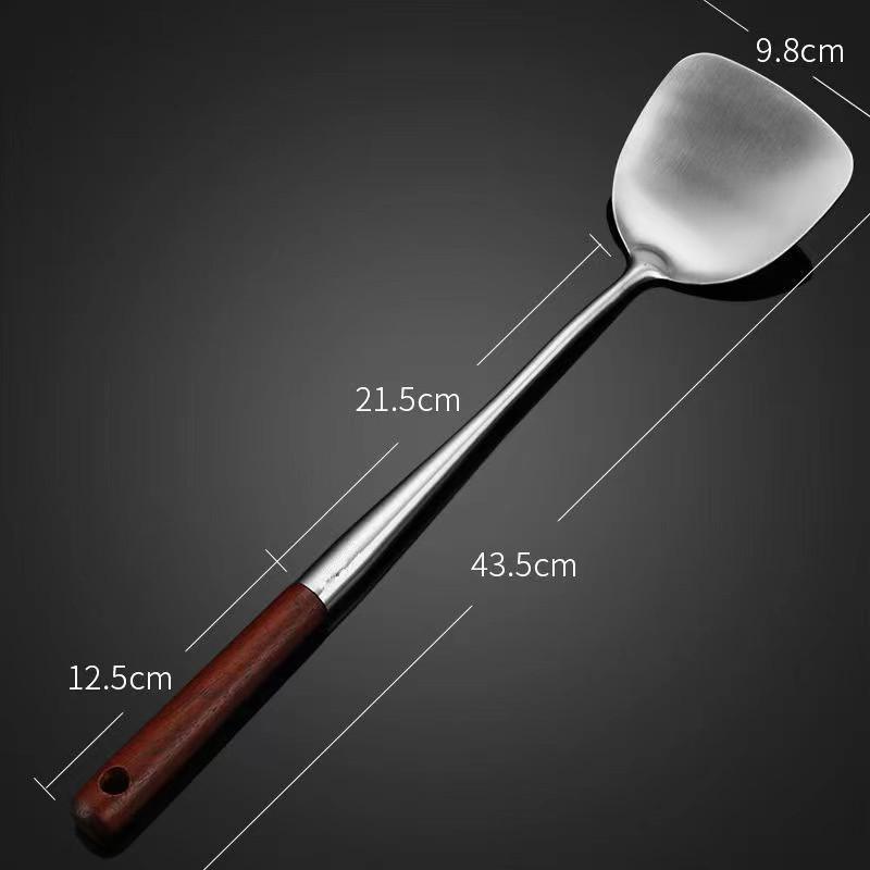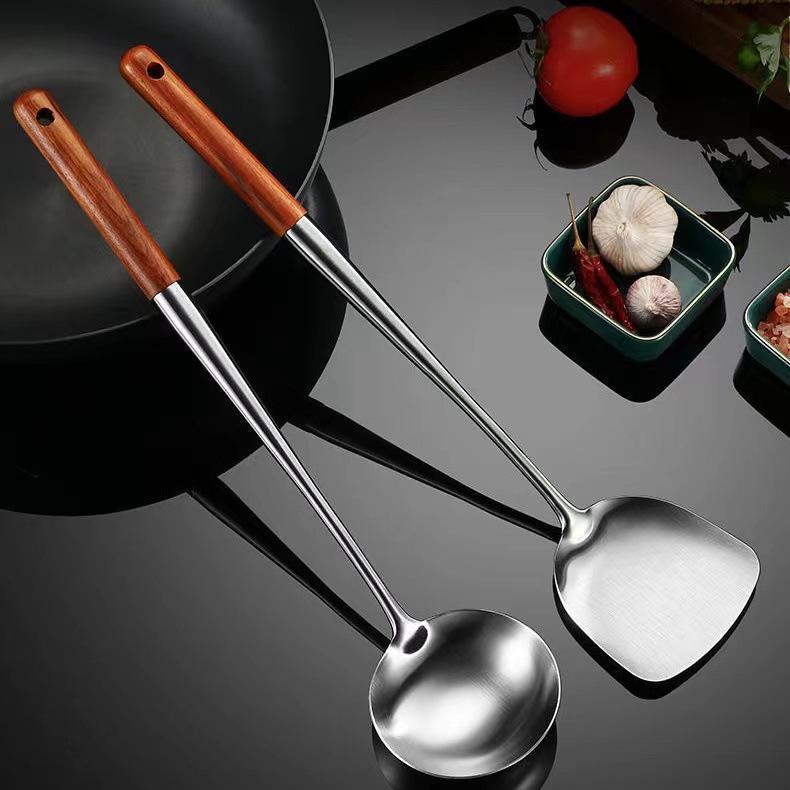 Набор кухонной утвари шеф-повара: Удлиненная деревянная ручка, вок и лопатка для жарки из нержавеющей стали 304, половник для супа