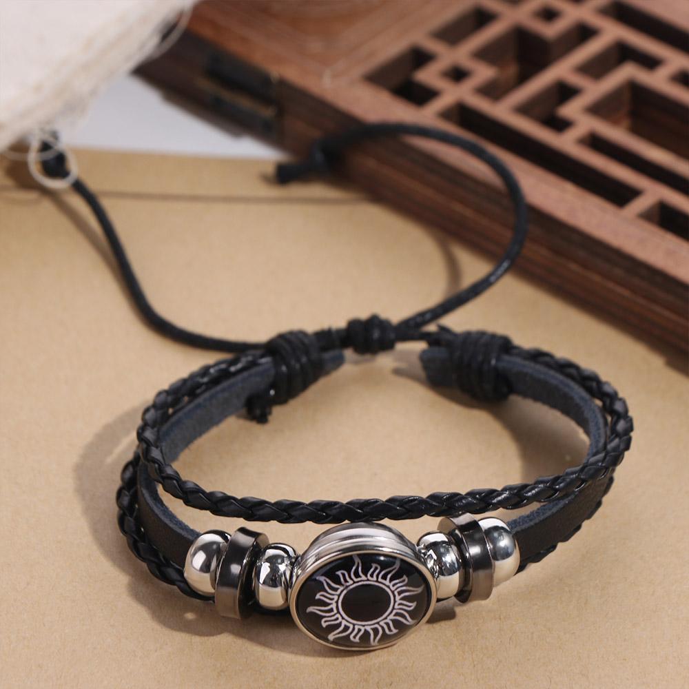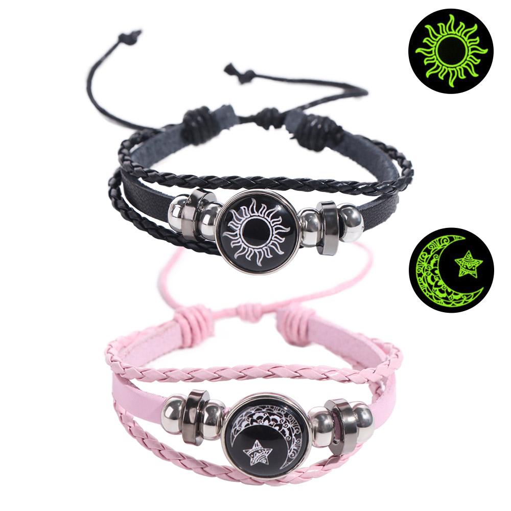 Sun Moon Couple Bracelet Luminous Knitted Hand Chain Punk Leather Bracelet Gift