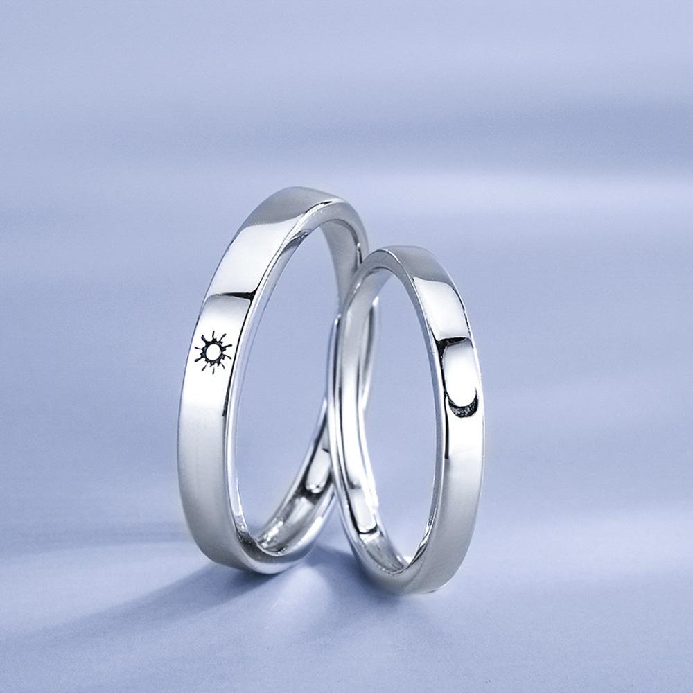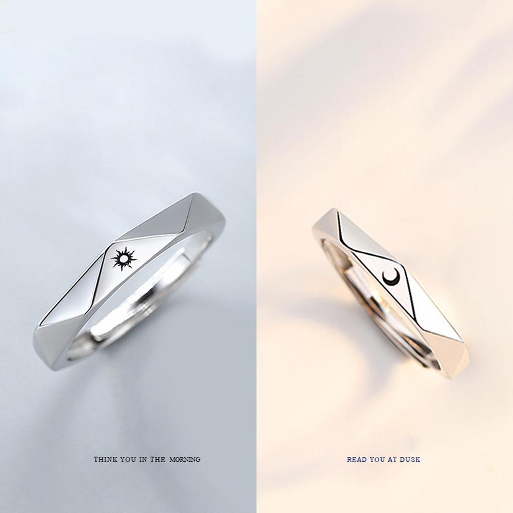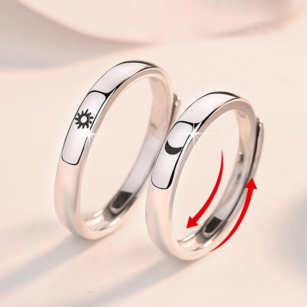 Women Men Opening Adjustable 1 Pair Finger Rings Set Couple Jewelry Sun Moon Ring Engagement Ring