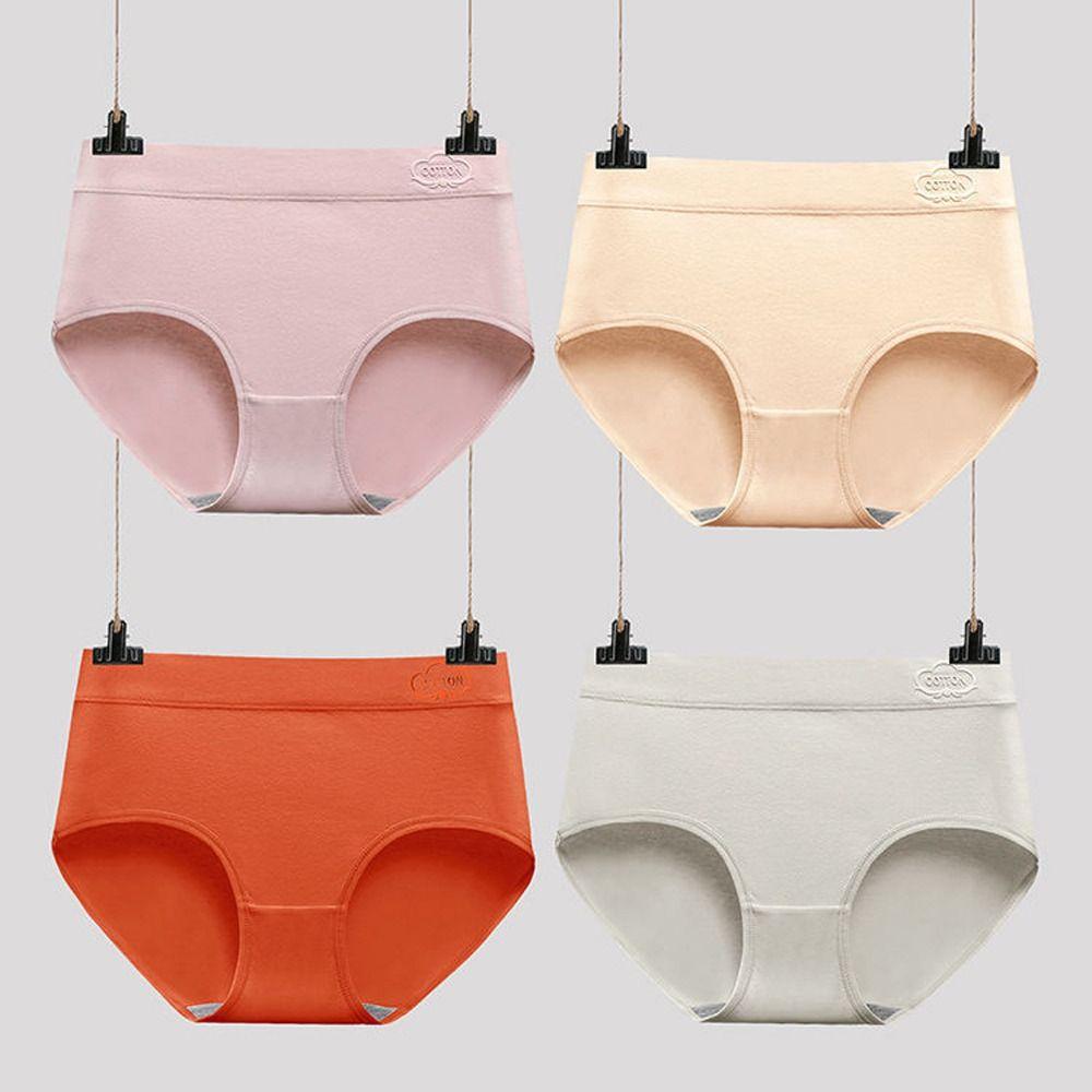 4pcs Solid Color Cotton Panties Lingerie Mid Waist Briefs Soft Women Underwear Lady