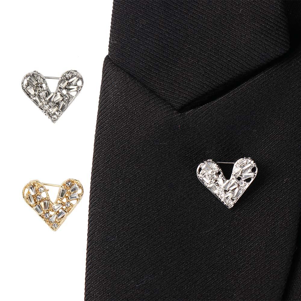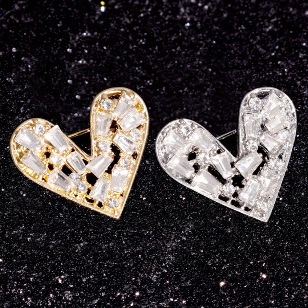 Rectangular Heart Brooch Korean Style Hollow Heart Breastpin Exquisite Rhinestone Pin Women