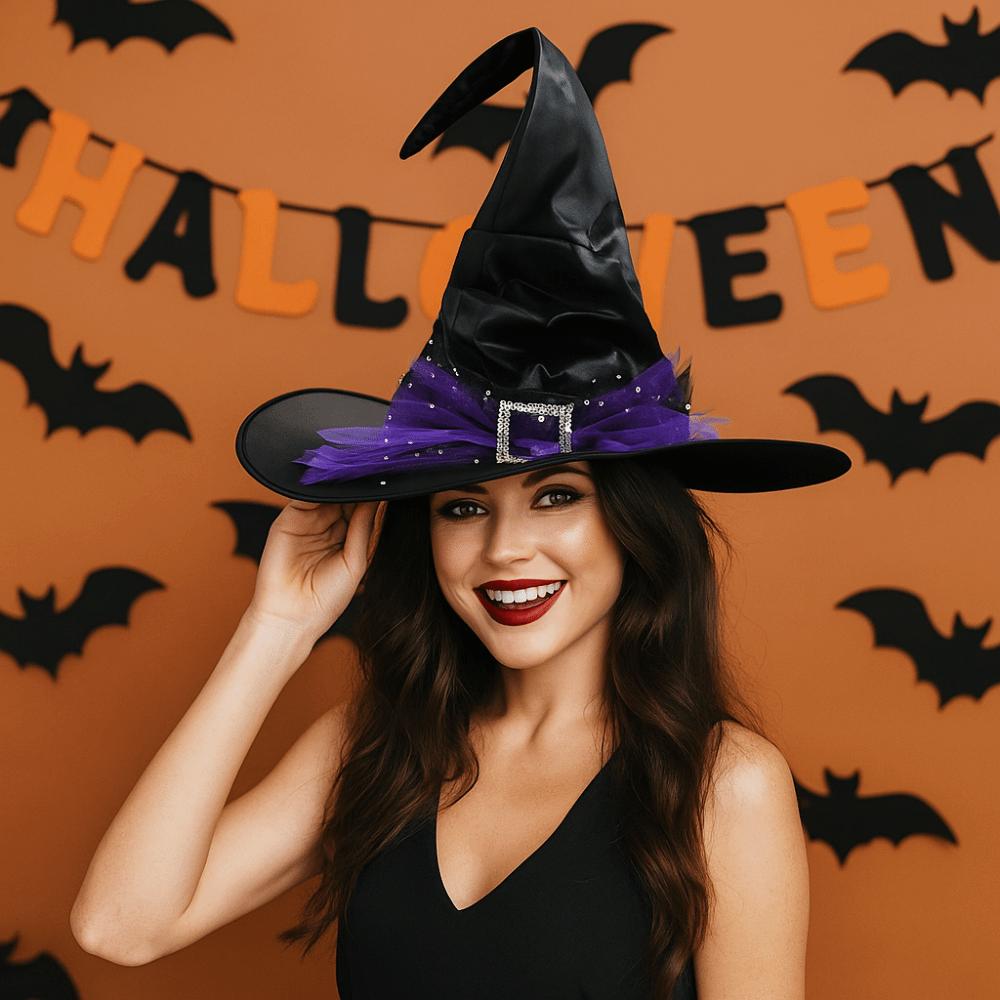 Folds Halloween Witch Hat Satins Wizard Cap Cool Mesh Bow Witch Hat Dress Up