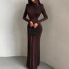 Европейский и американский стиль 2025 Осень/Зима Плиссированное облегающее однотонное платье с длинным рукавом и круглым вырезом