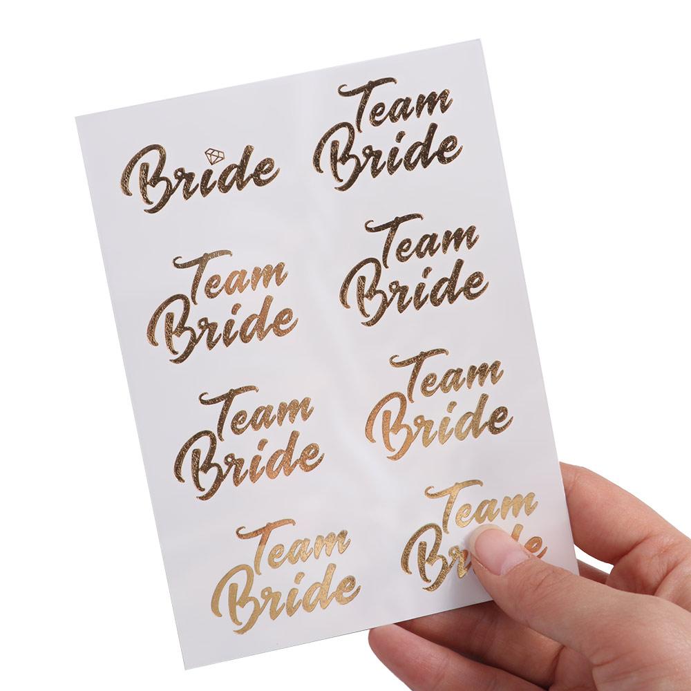 Золотая наклейка горячего тиснения Водонепроницаемые наклейки для свадьбы и невесты Наклейки для вечеринки Татуировки для команды невесты