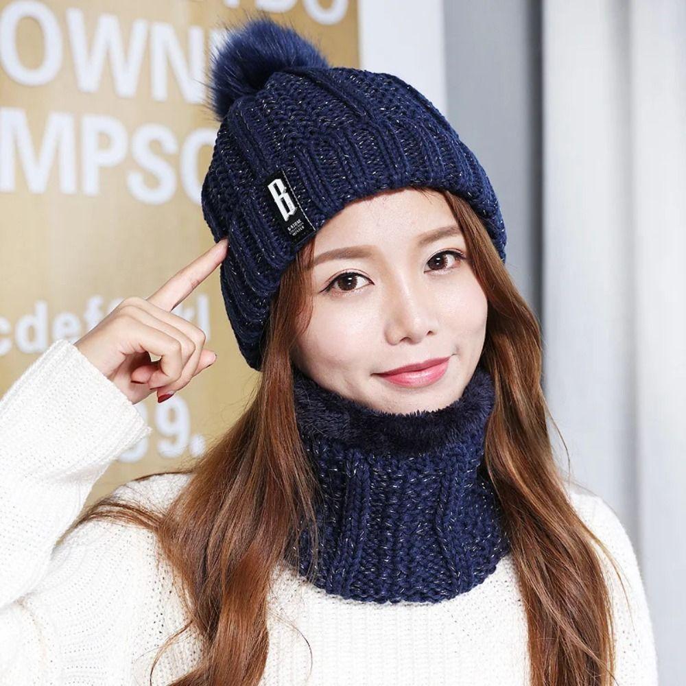 Keep Warm Winter Knitted Scarf Hat Thick Cycling Warm Wool Fashion Winter Hat Scarf Set Girl