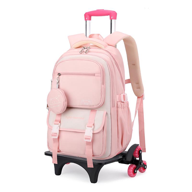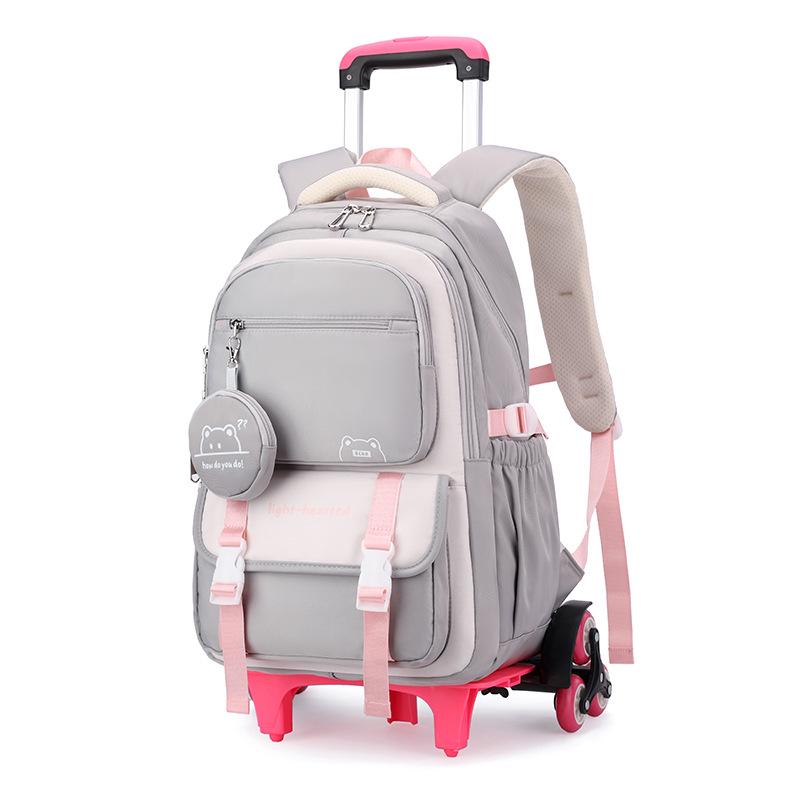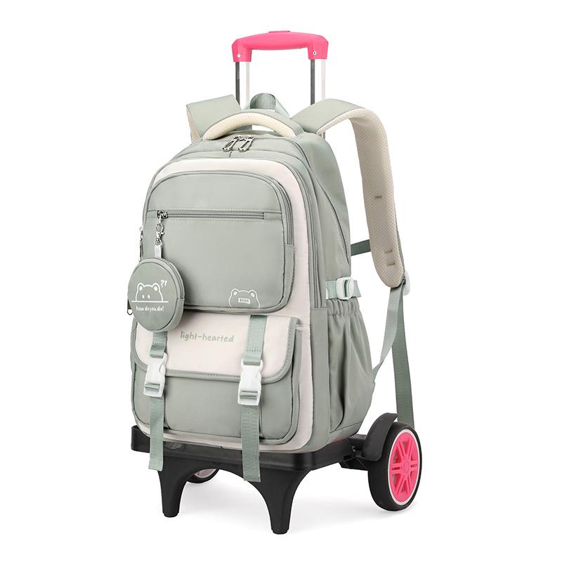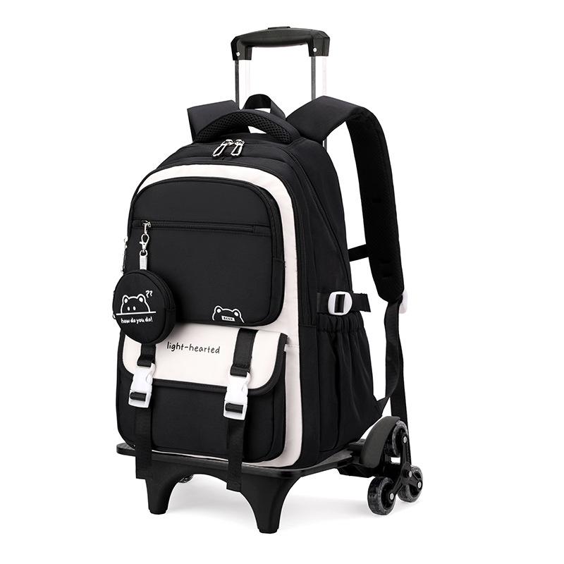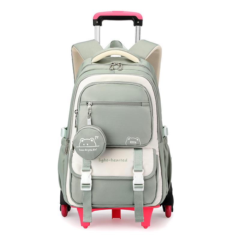 Натуральный рюкзак-тележка с дизайном рыбы для девочек средней школы - Большая многослойная вместимость
