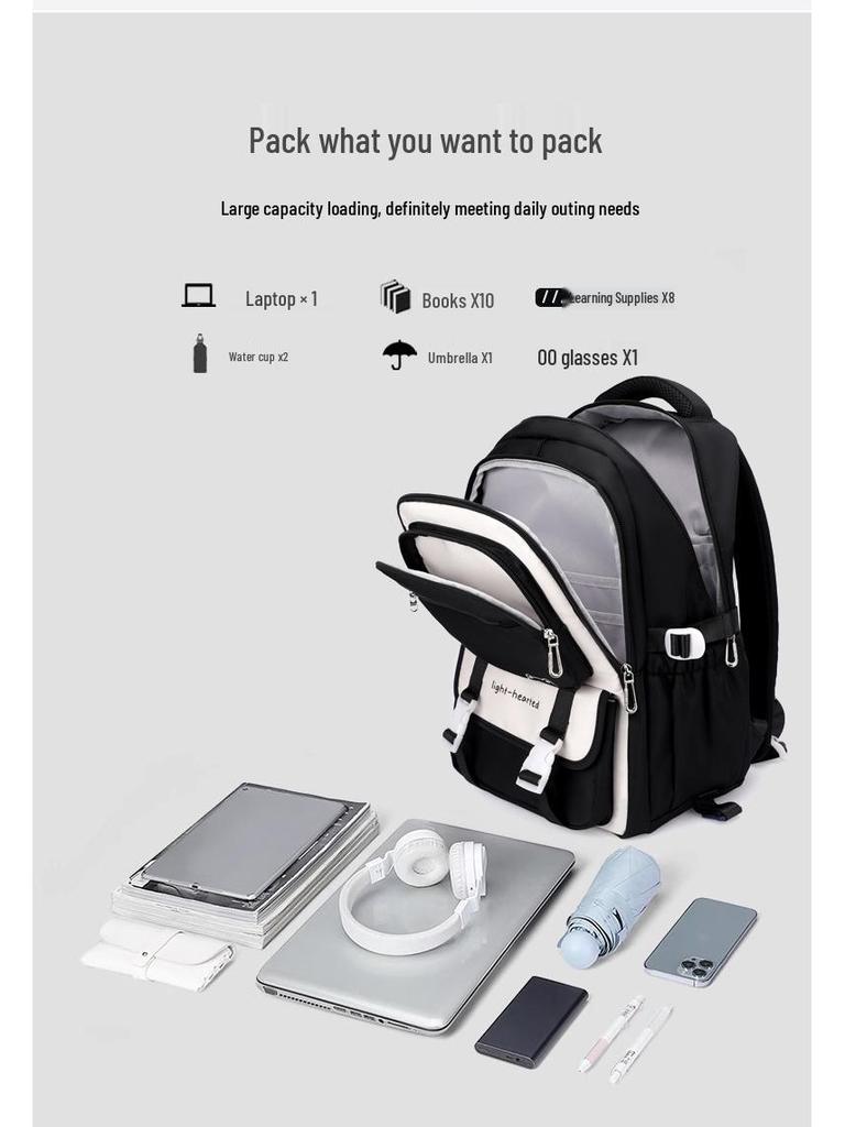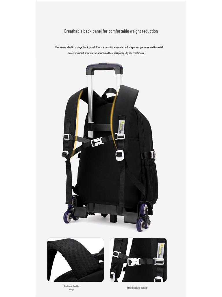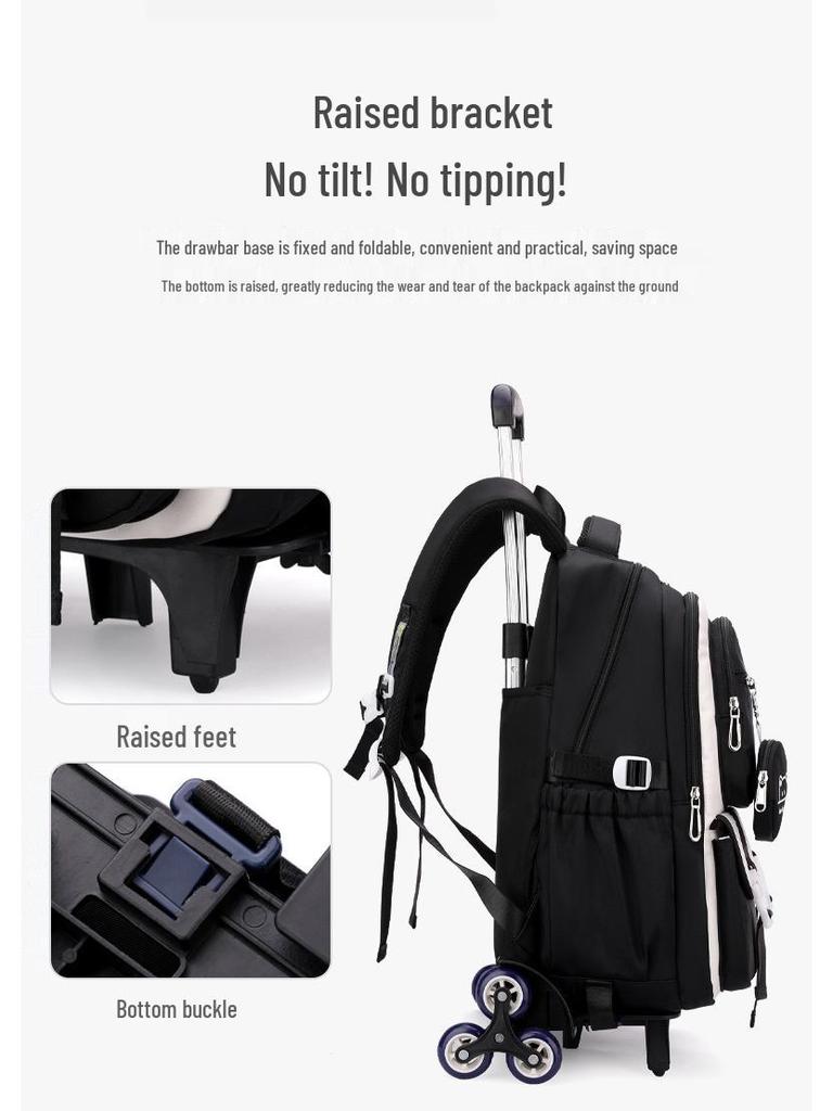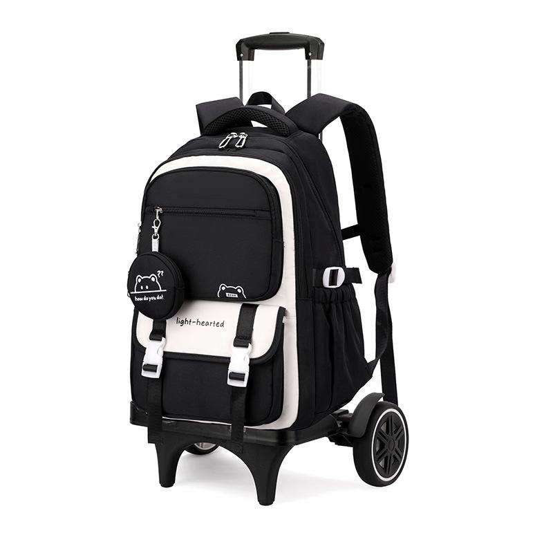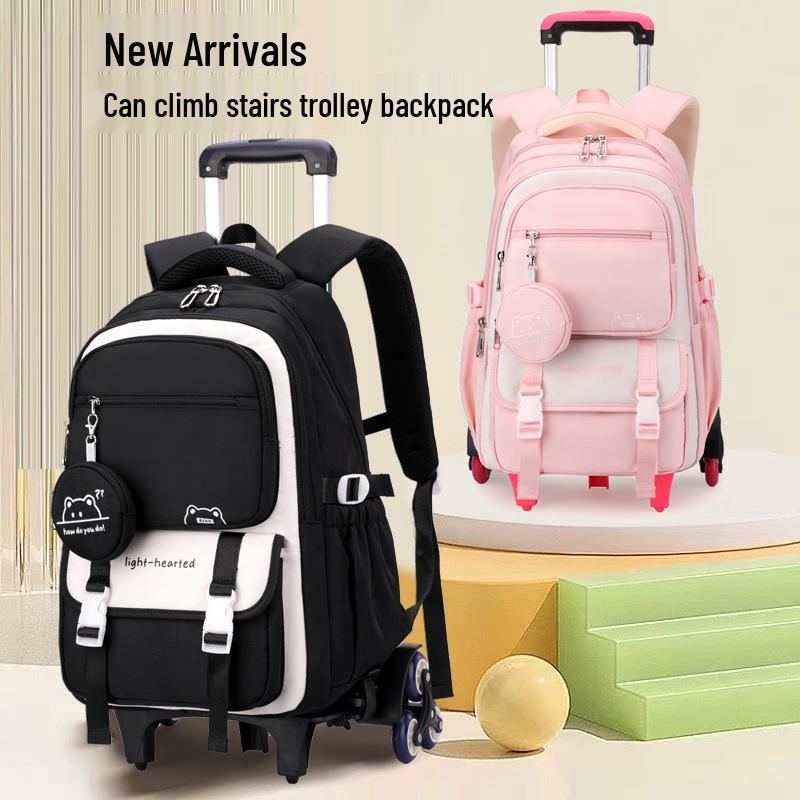 Натуральный рюкзак-тележка с дизайном рыбы для девочек средней школы - Большая многослойная вместимость