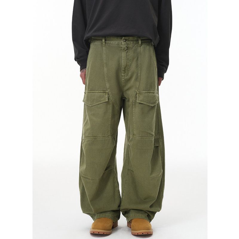 American-Style Multi-Pocket Cargo Pants for Men, Army Green, 2025 New Autumn Trendy Brand, Retro Loose Fit, Curved Knife Casual Pants for Men