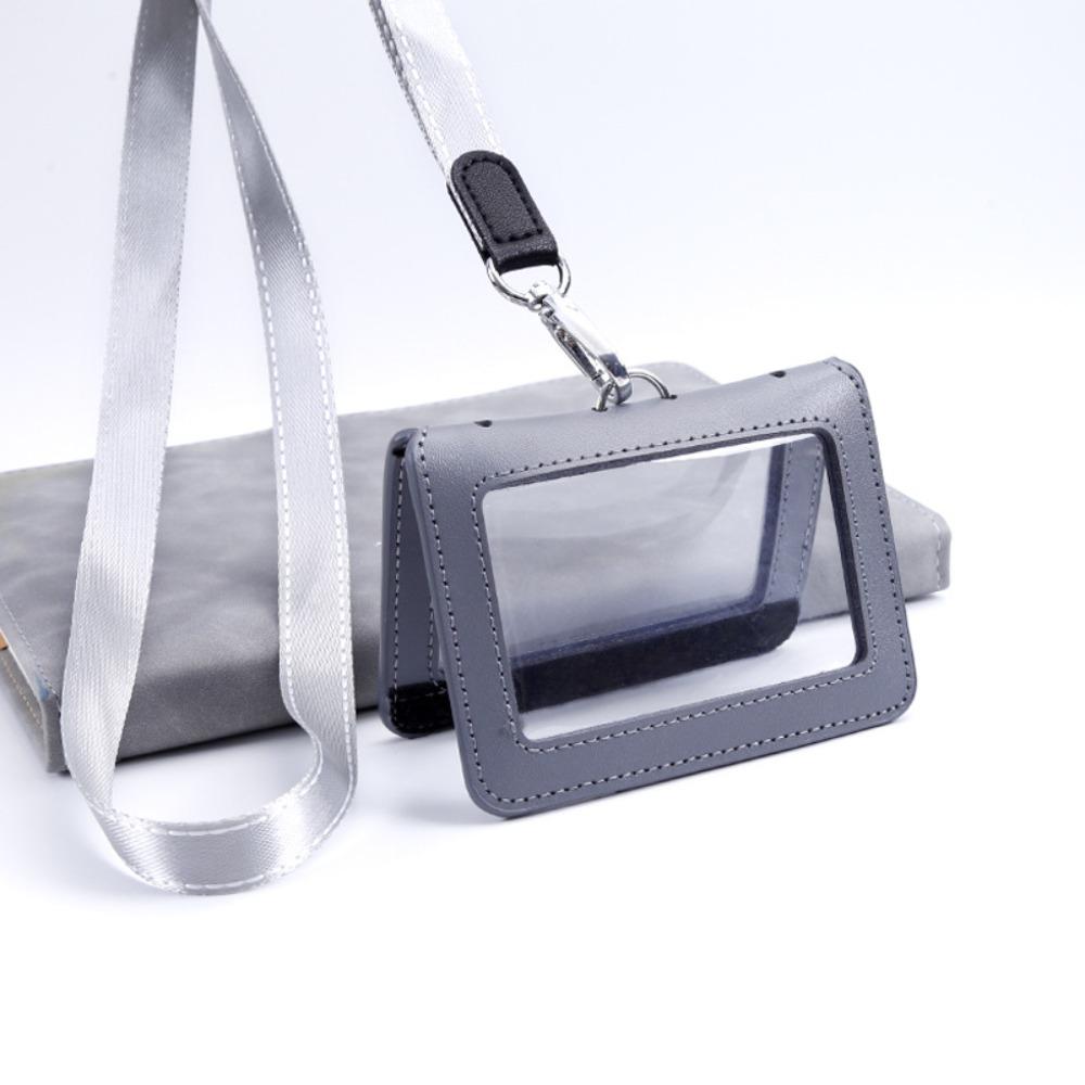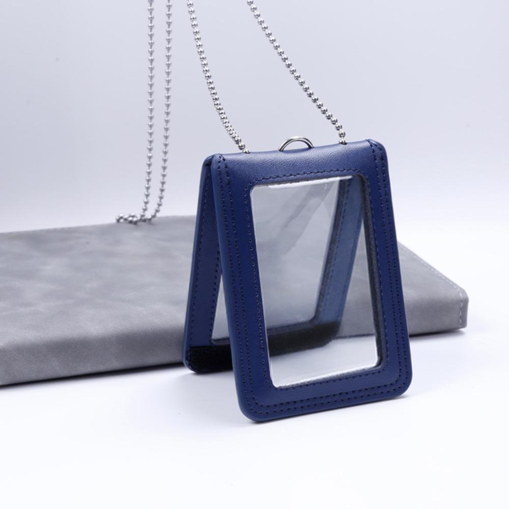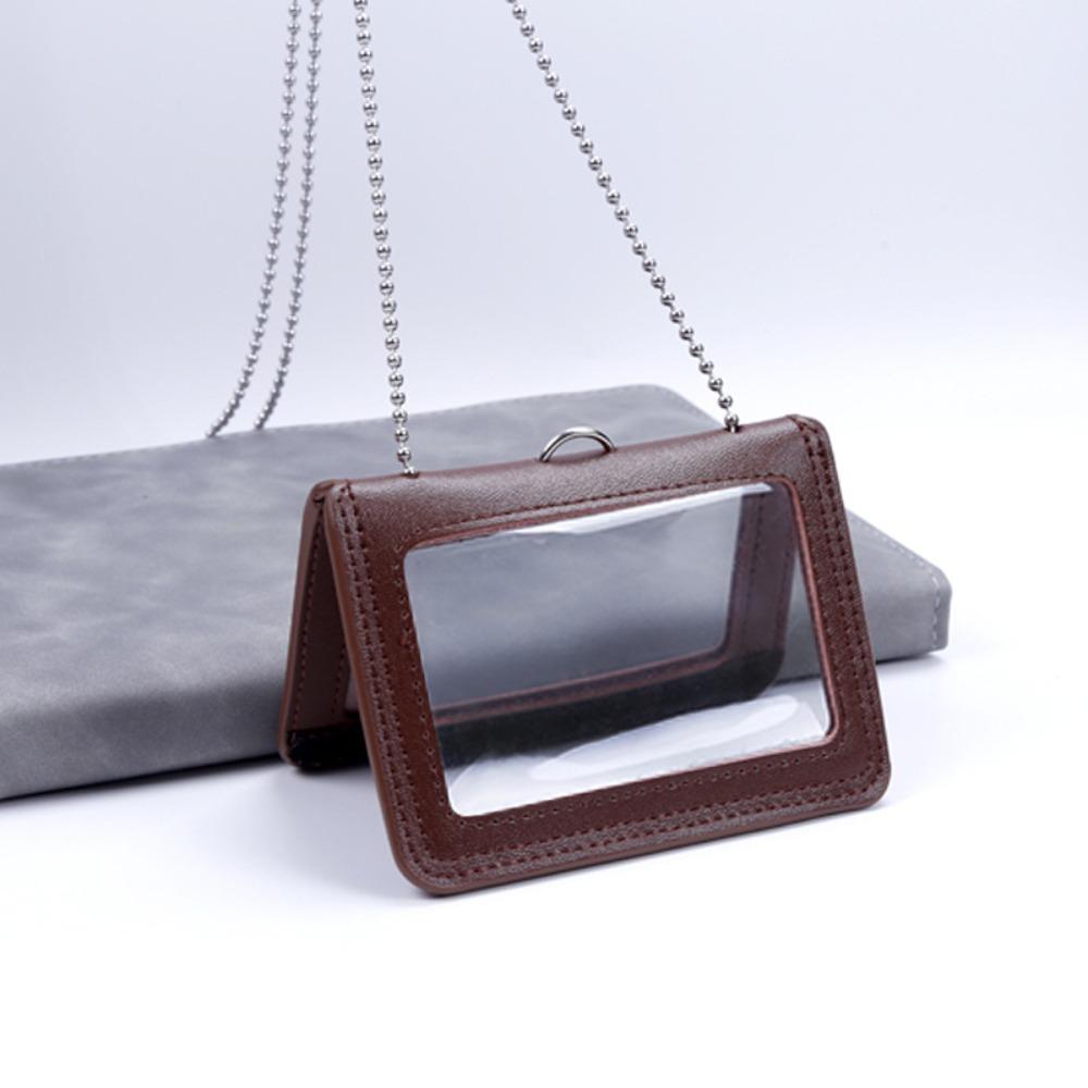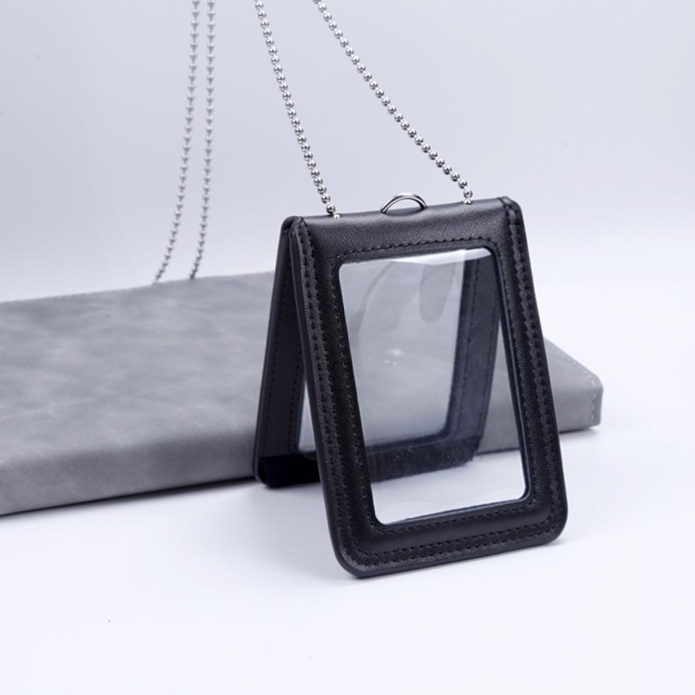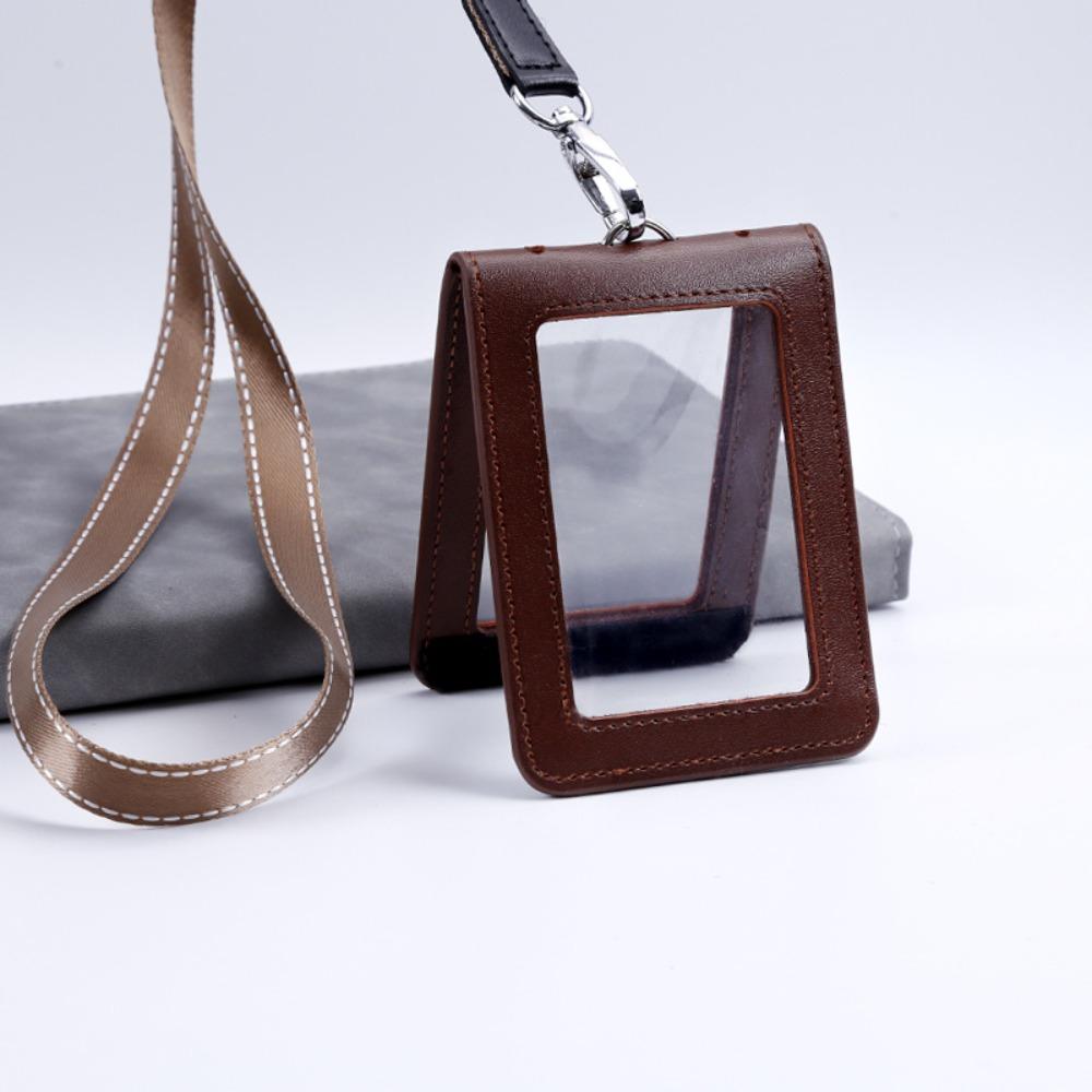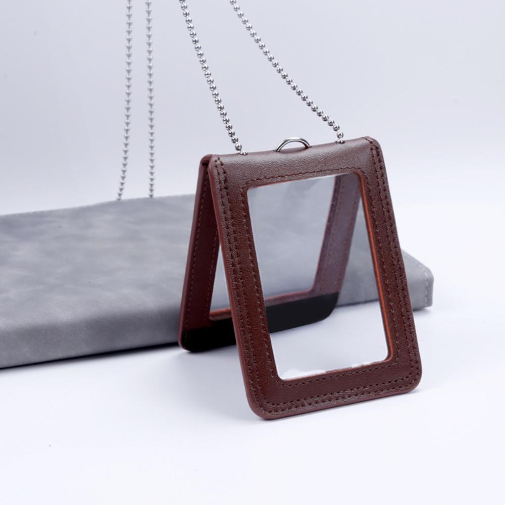 Double-Sided ID Card Holder Badge Clip Leather Badge Holder Leather Card Cover Work Bank Card
