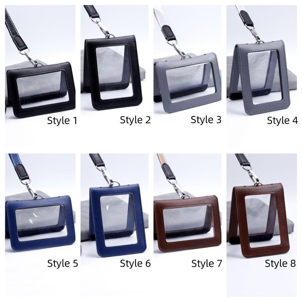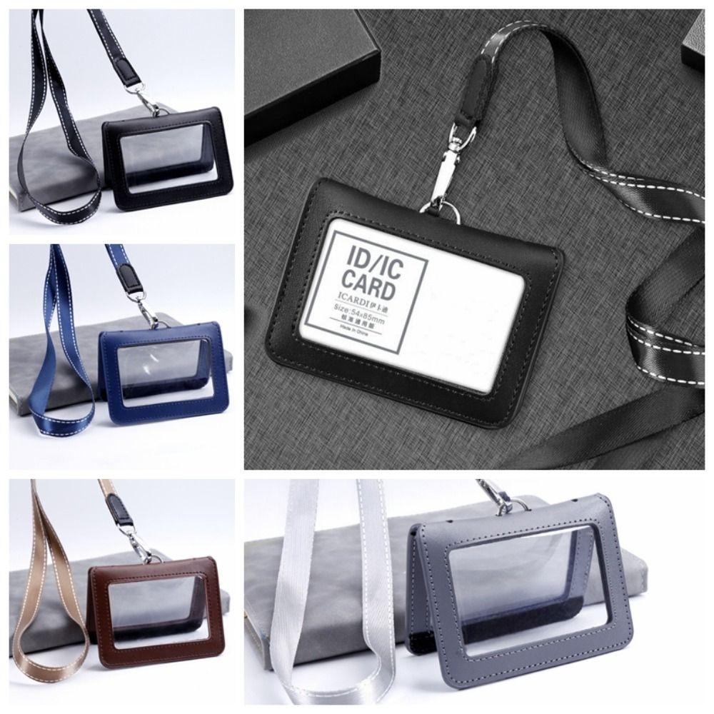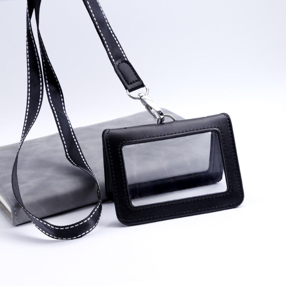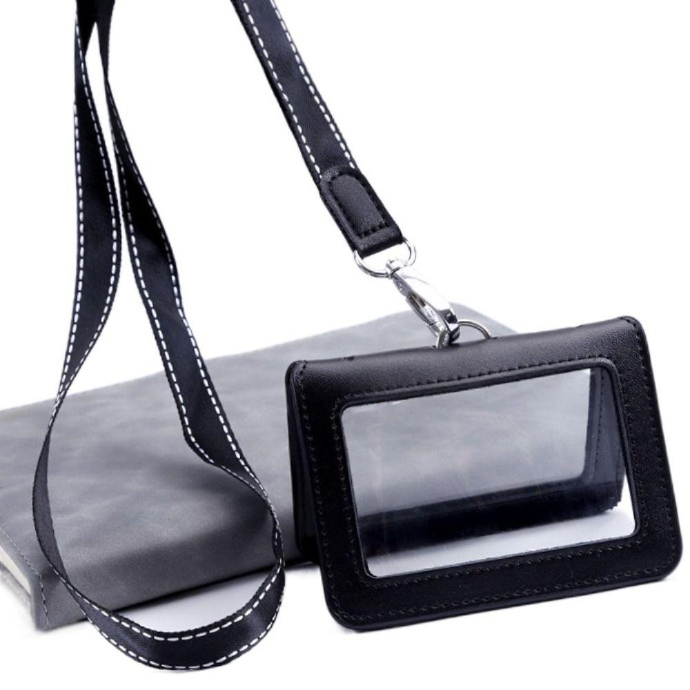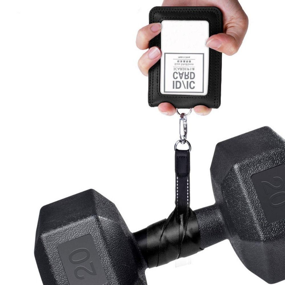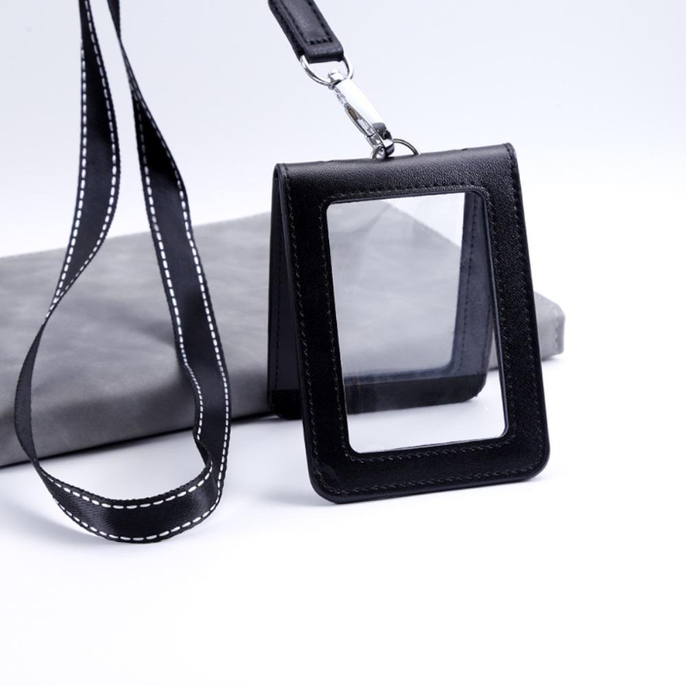 Double-Sided ID Card Holder Badge Clip Leather Badge Holder Leather Card Cover Work Bank Card