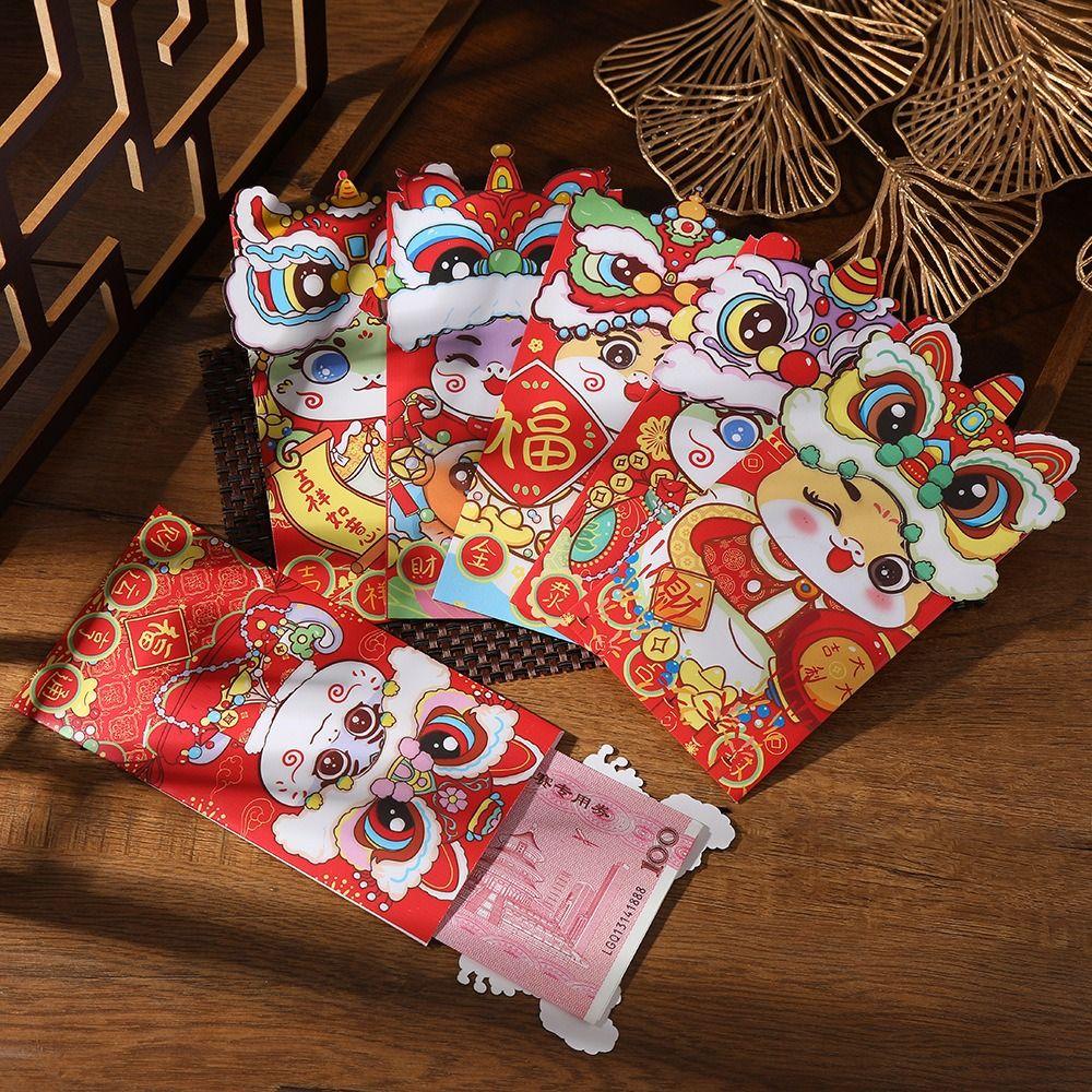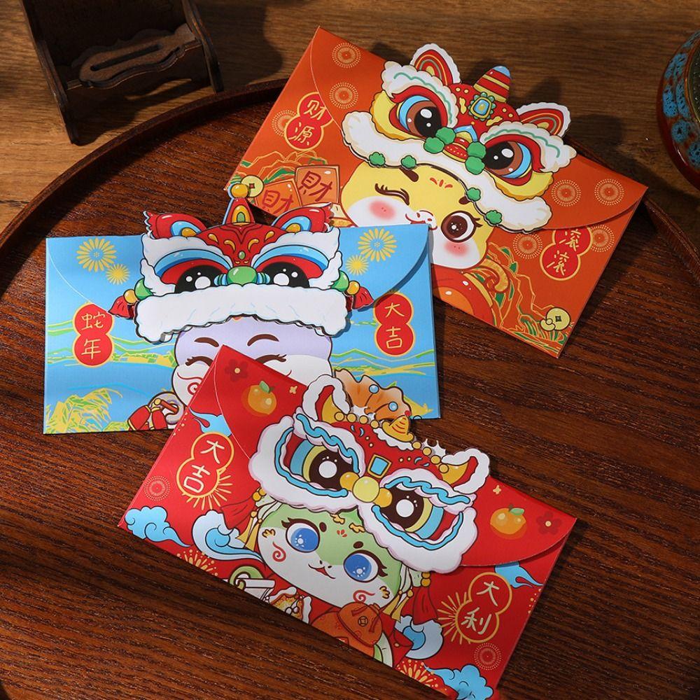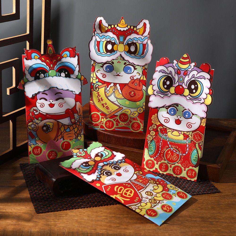 6pcs/set Lion Dance Red Envelope Snake Year Lucky Money Bag Cute Red Packet Spring Festival