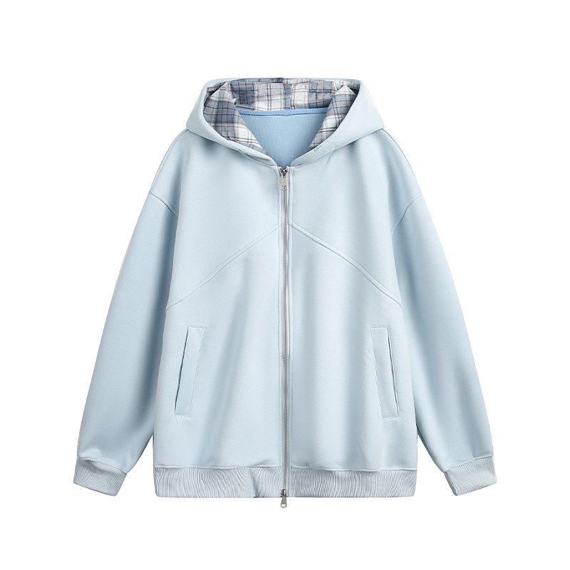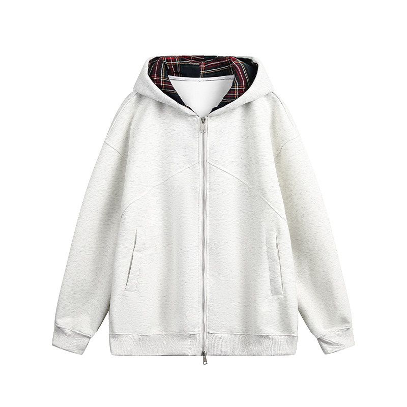 Jungle Tiger Trendy Plaid Patchwork Hooded Sweatshirt for Men and Women, Autumn Vintage Loose Casual Couple Cardigan Jacket