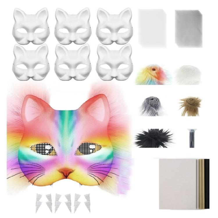 Раскройте свой творческий потенциал с нашим набором из 29 неокрашенных масок кошек, который включает 6 белых бумажных масок, 12 сеток для глаз (черное и белое), Набор из 42 штук, включающий 5 меховых отделок, 6 валяных полотен, 6 белых бумажных масок, 12 сеток для глаз (черное и белое), 5 меховая отделка, 6 валяная ткань, 12 зубов, 30 кошачьих усов.