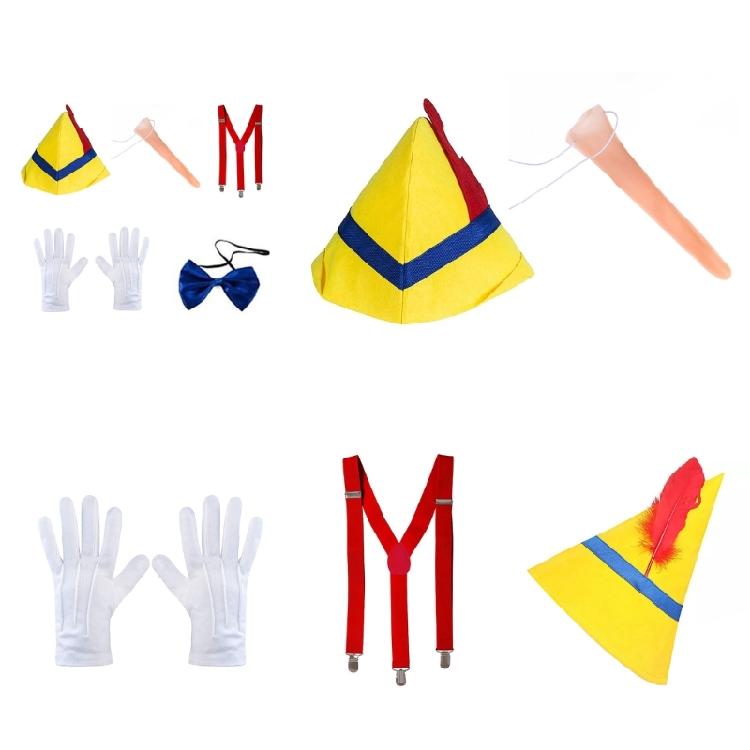 Кукольный костюм, колпаки с длинным носом, подтяжки, галстук, перчатки, костюм персонажа из книги сказок, костюмы для Хэллоуина, костюмы для косплея, взрослые