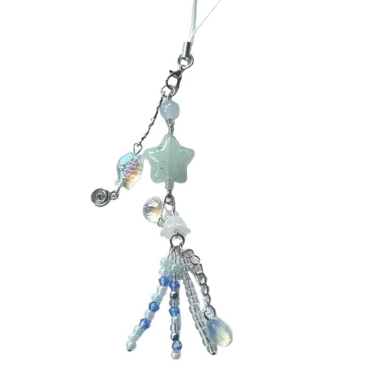 Многофункциональный художественный бисерный брелок для телефона с акцентом в виде медузы. Аксессуар для школы, работы или досуга. Стильные наряды.