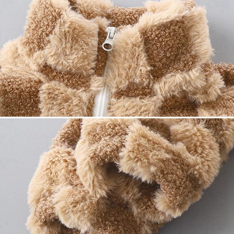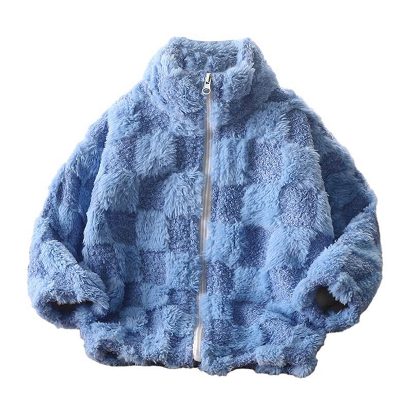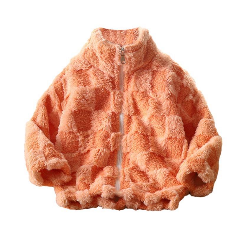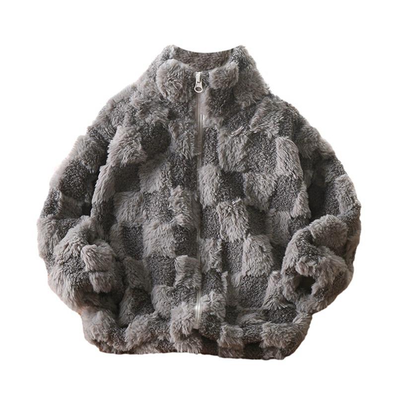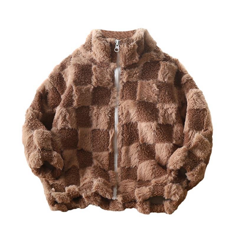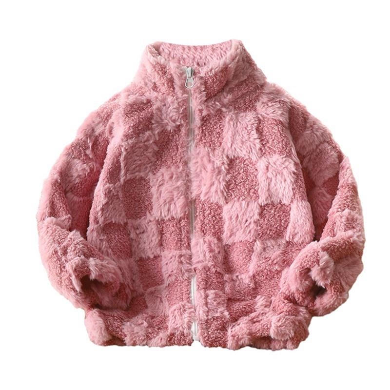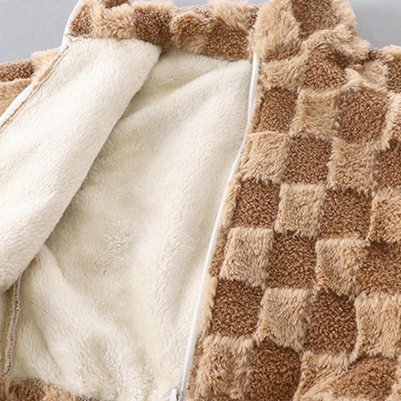 Детское плюшевое клетчатое пальто на молнии для детей 3-12 лет