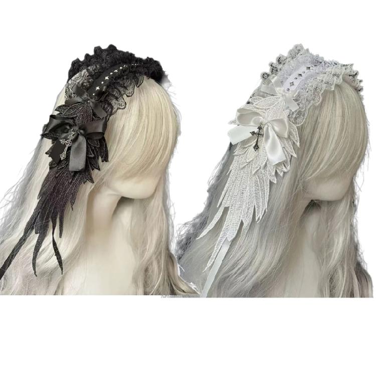 Кружевной бант Заколка для волос с крылом ангела Аниме-тематика Мероприятие Кружевной рюш Отделка Повязка на голову Для ролевых вечеринок и костюма