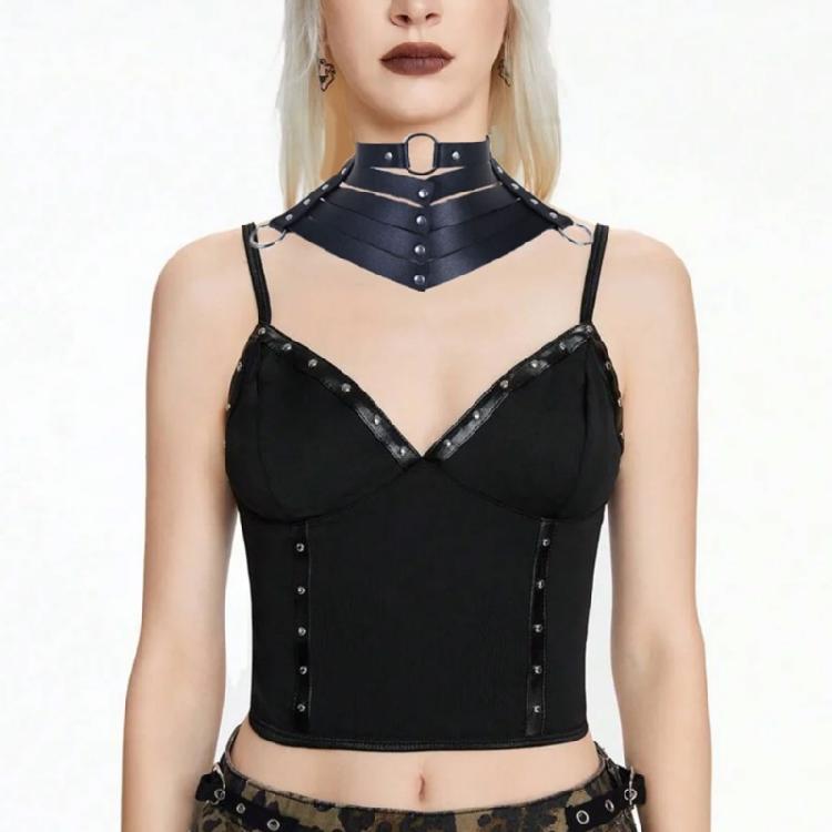 Унисекс Ожерелье в стиле Y2K из Искусственной Кожи Высококачественное Ожерелье из ПУ Кожи Бижутерия с Регулируемыми Пряжками и Металлическими Кольцами
