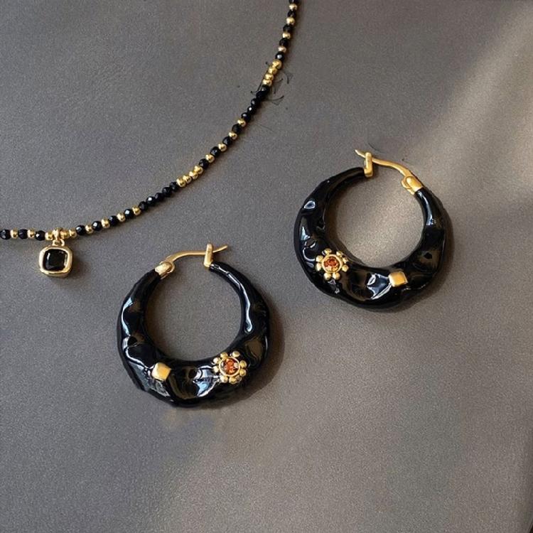 Модные черные французские серьги Портативная прочная конструкция из сплава Украшение для повседневного использования и формальной обстановки
