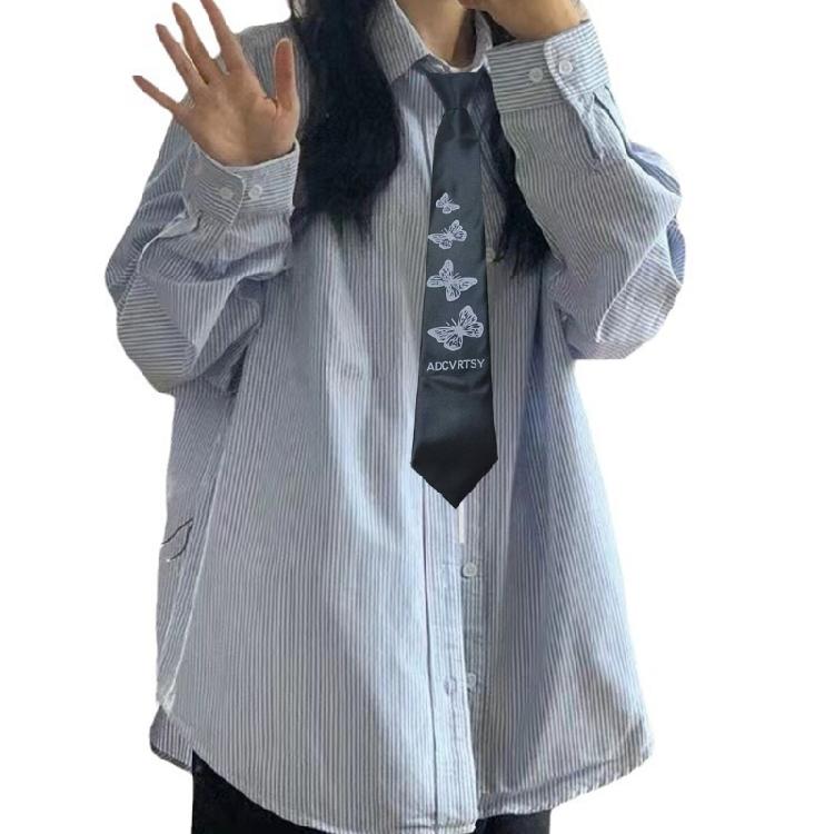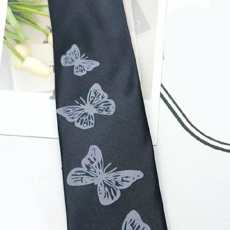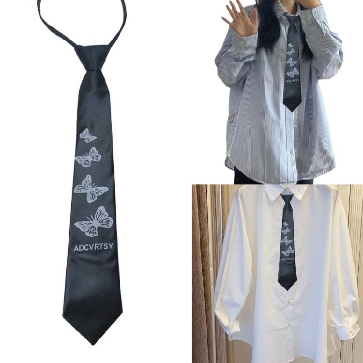 Унисекс Завязанный галстук с регулируемыми молниями Бабочки Цветочный принт Черный галстук Кампус Преппи Воротник рубашки Галстук