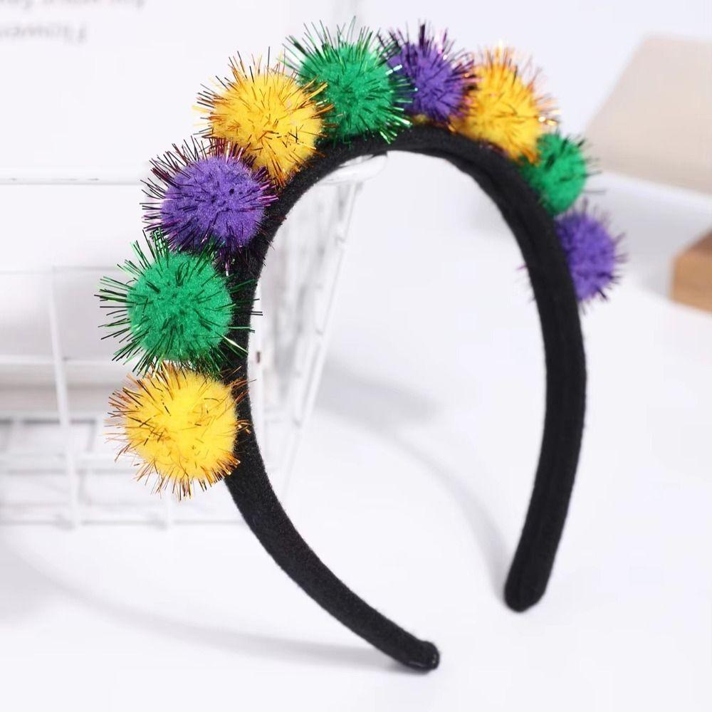 High Elastic Glitter Ball Hairbands Creative Mardi Gras Headdress Hair Hoop for Holiday